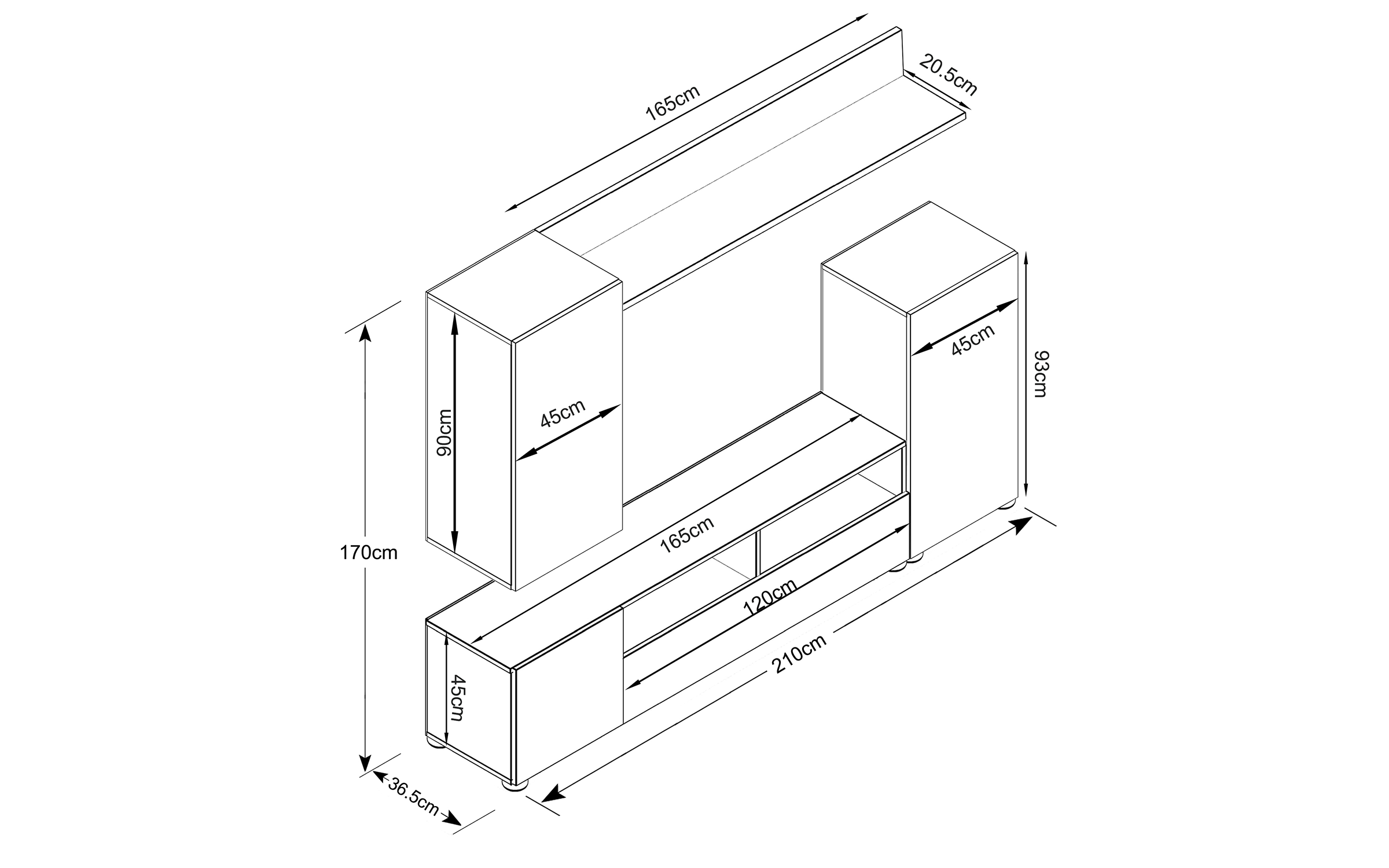 - modul TV: L165 В36.5 H48 сm