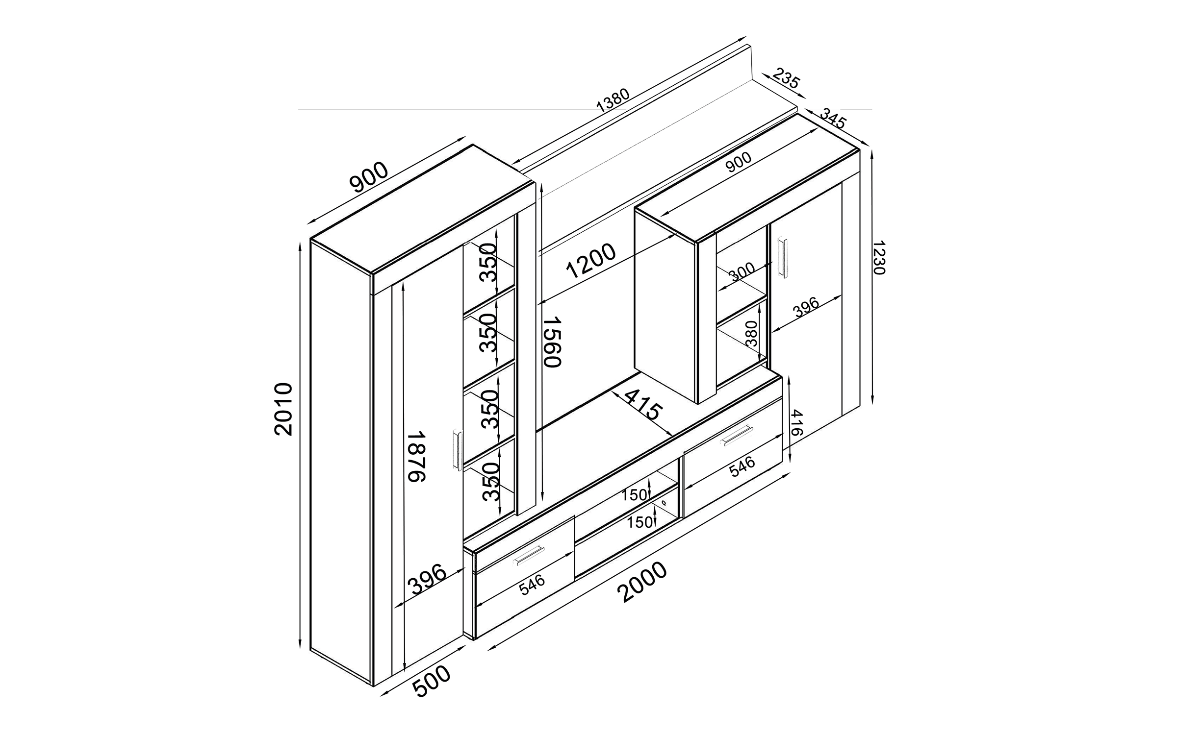 - modul TV: L200 В41.5 H41.6 сm