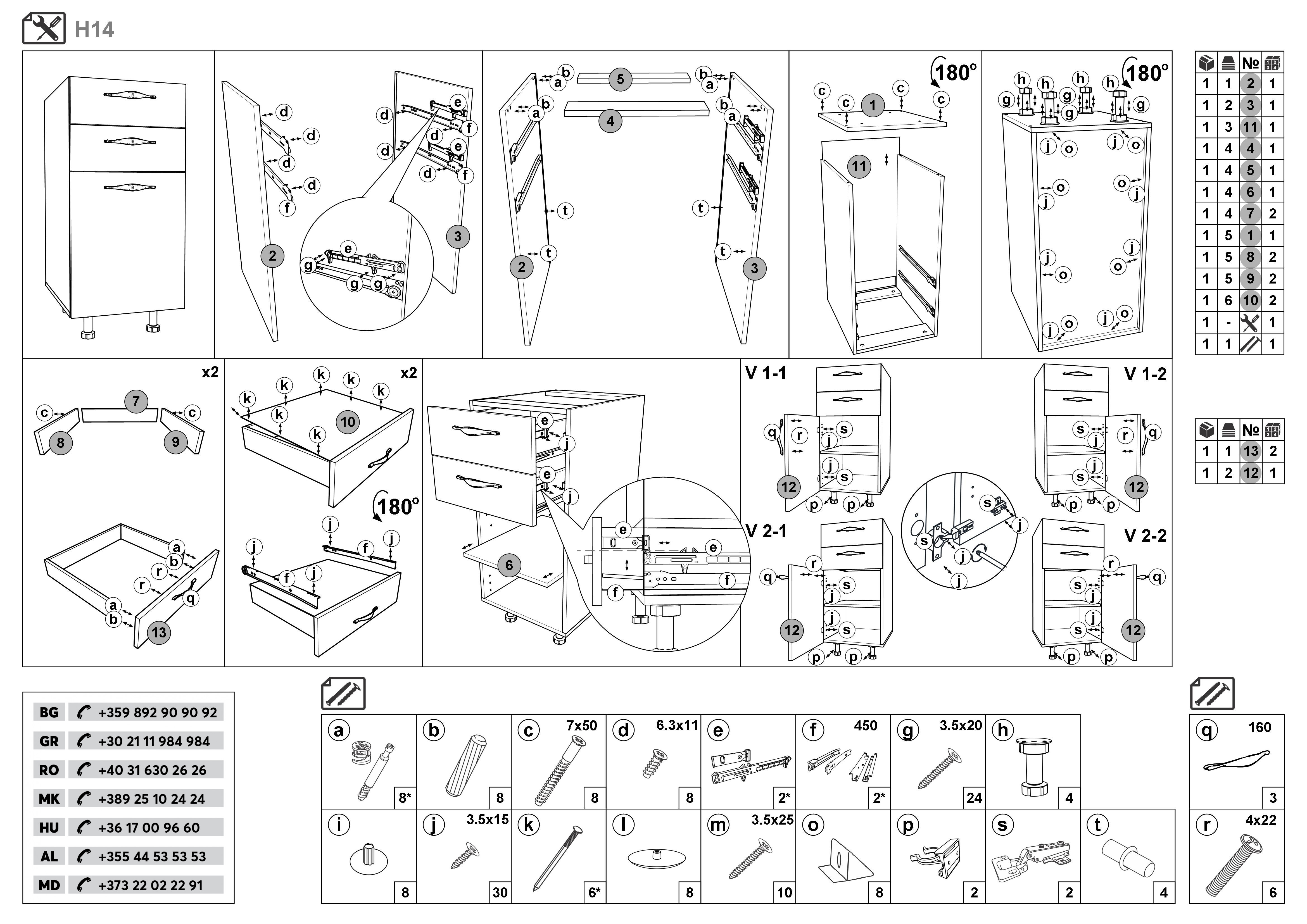 - Dulapurile pot fi aranjate intr-o ordine diferita de cea din ilustratie.