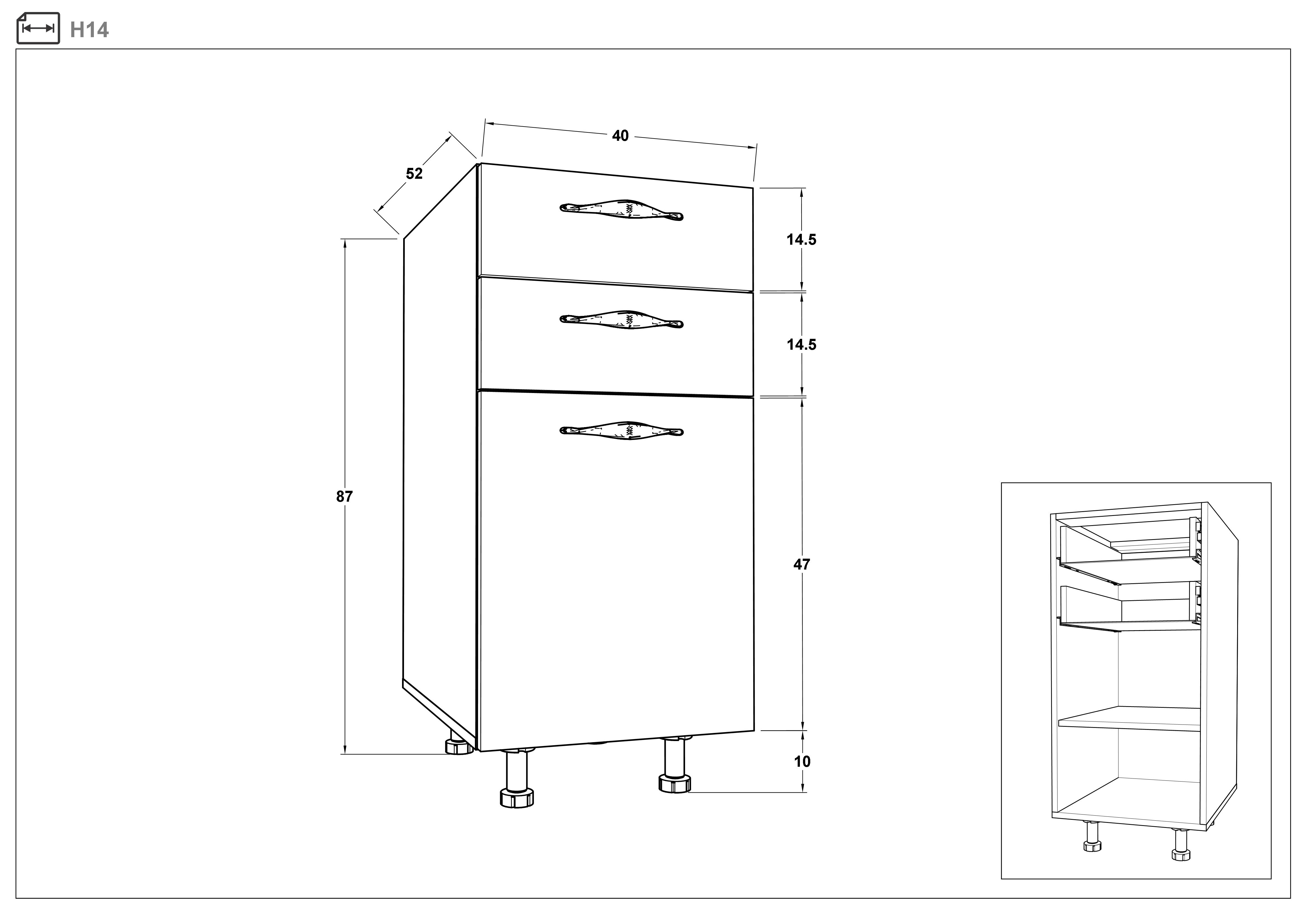 - partea inferioara: L100 B52 H87 сm