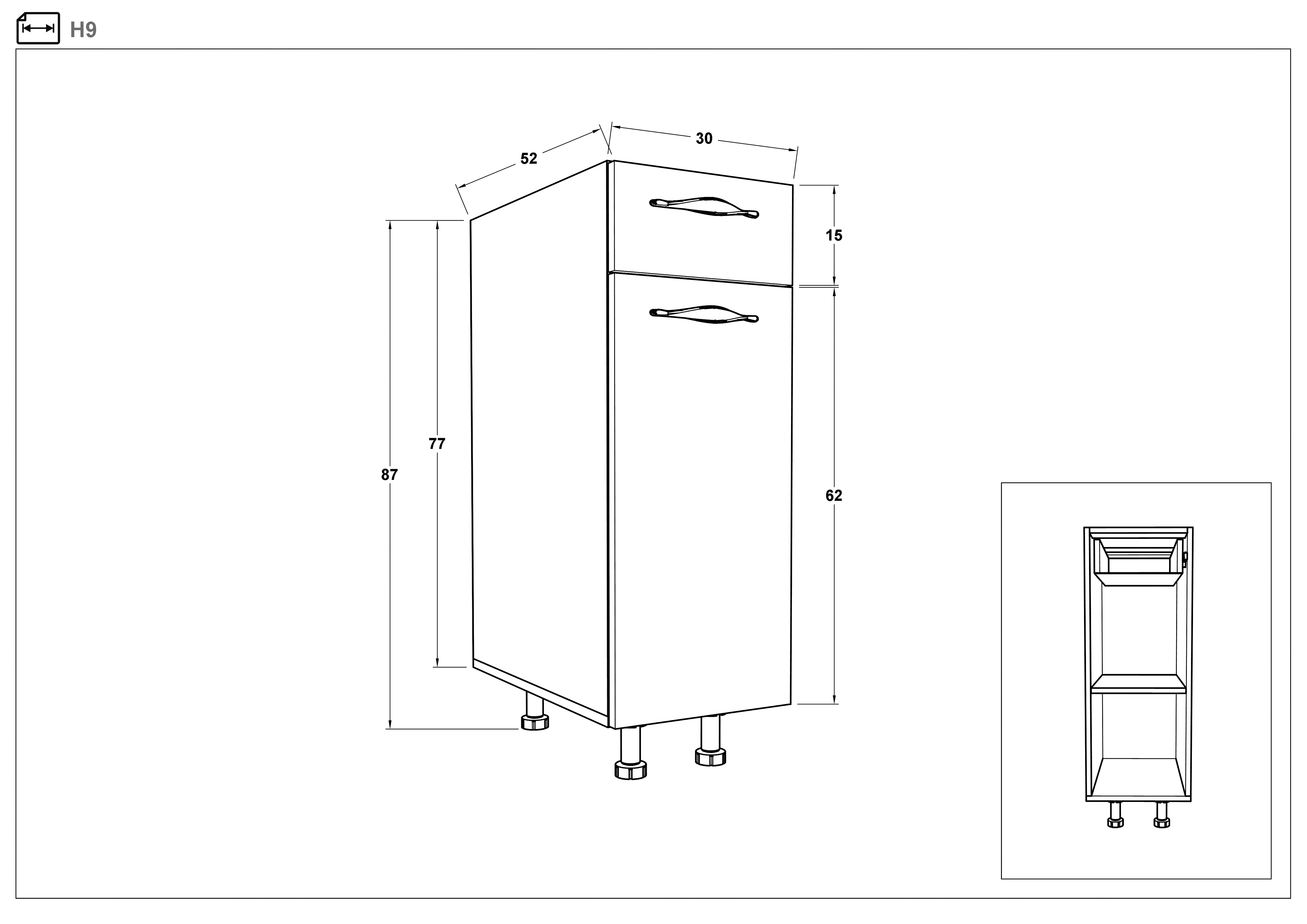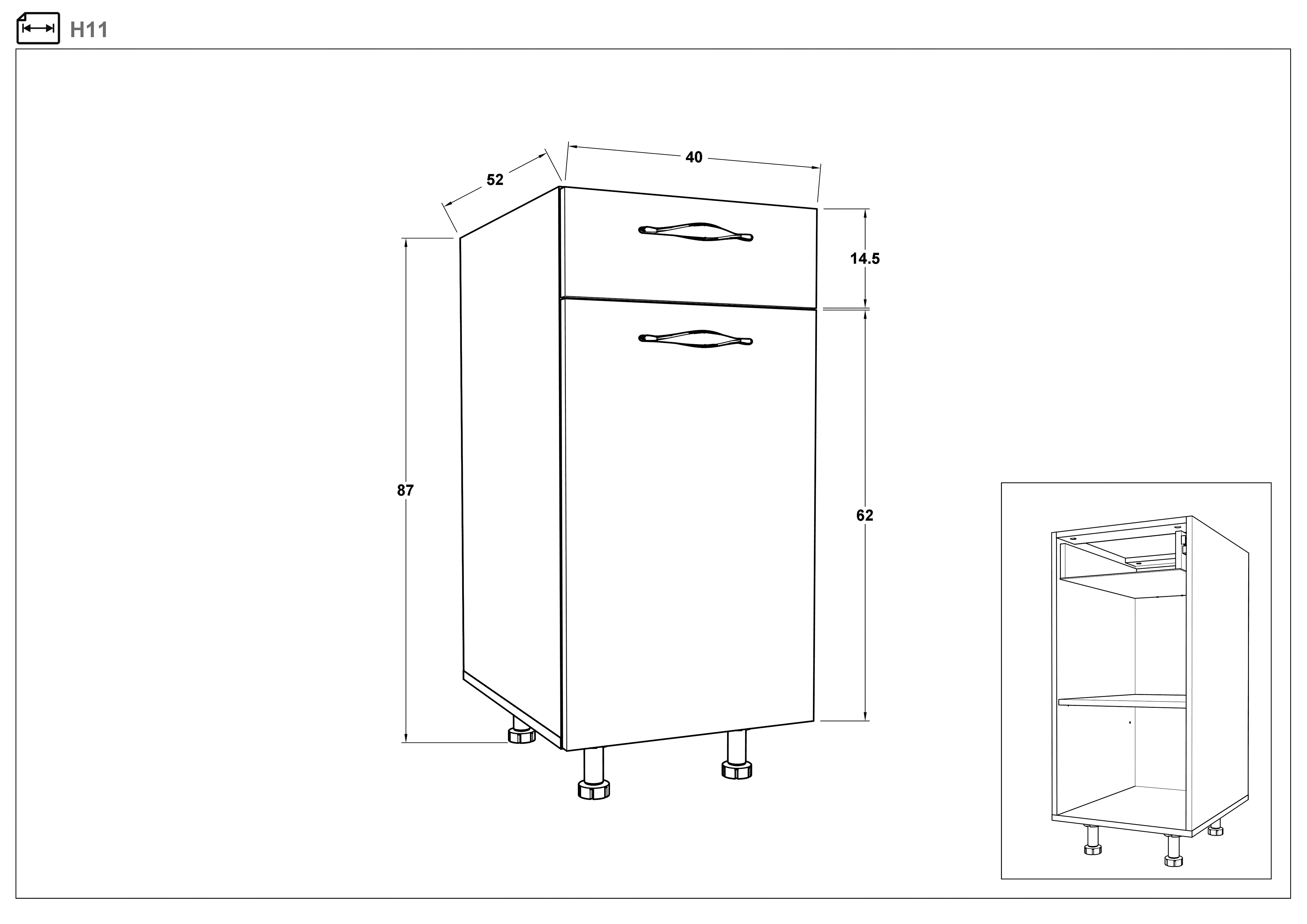 - partea inferioara: L140 B52 H87 сm