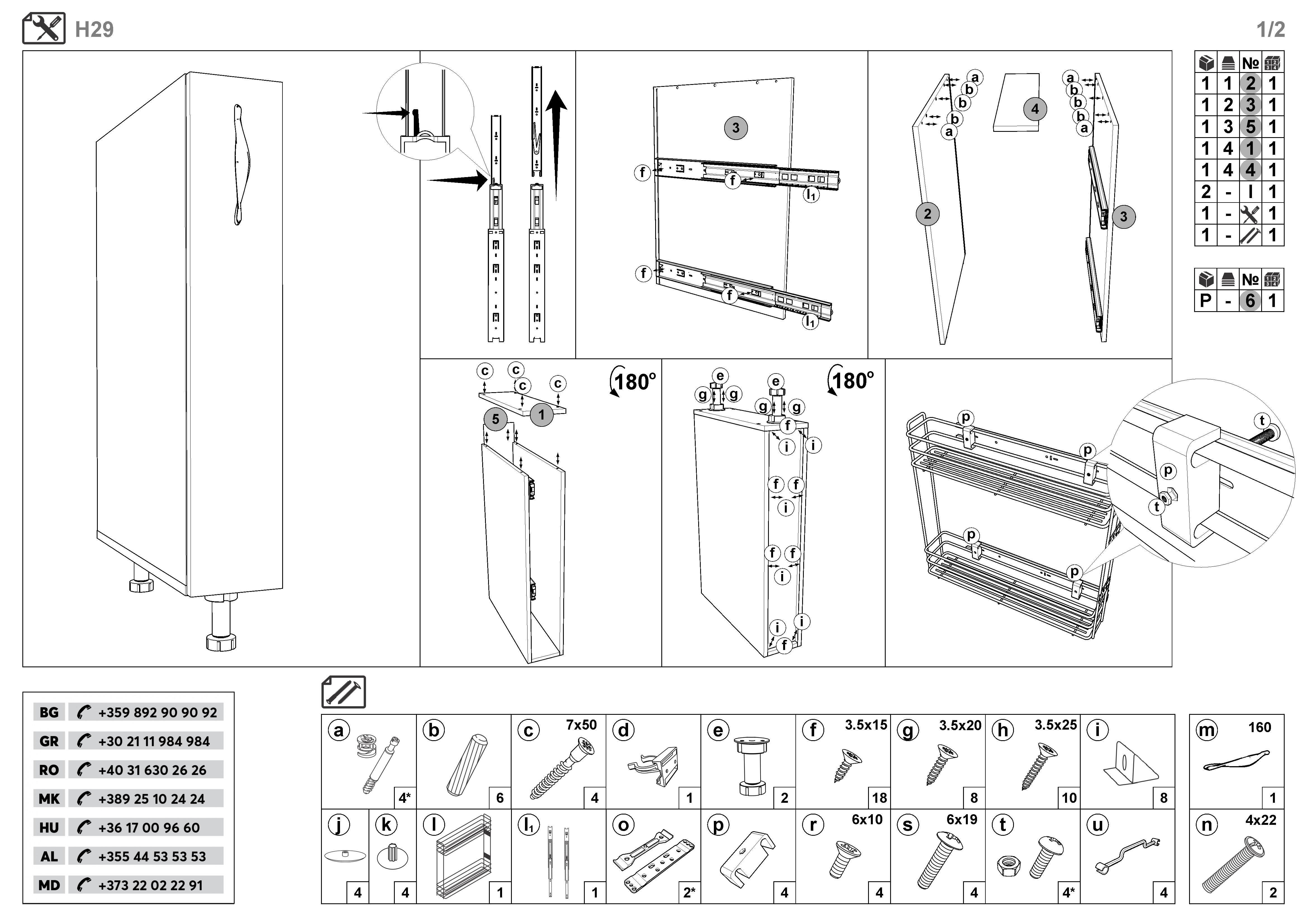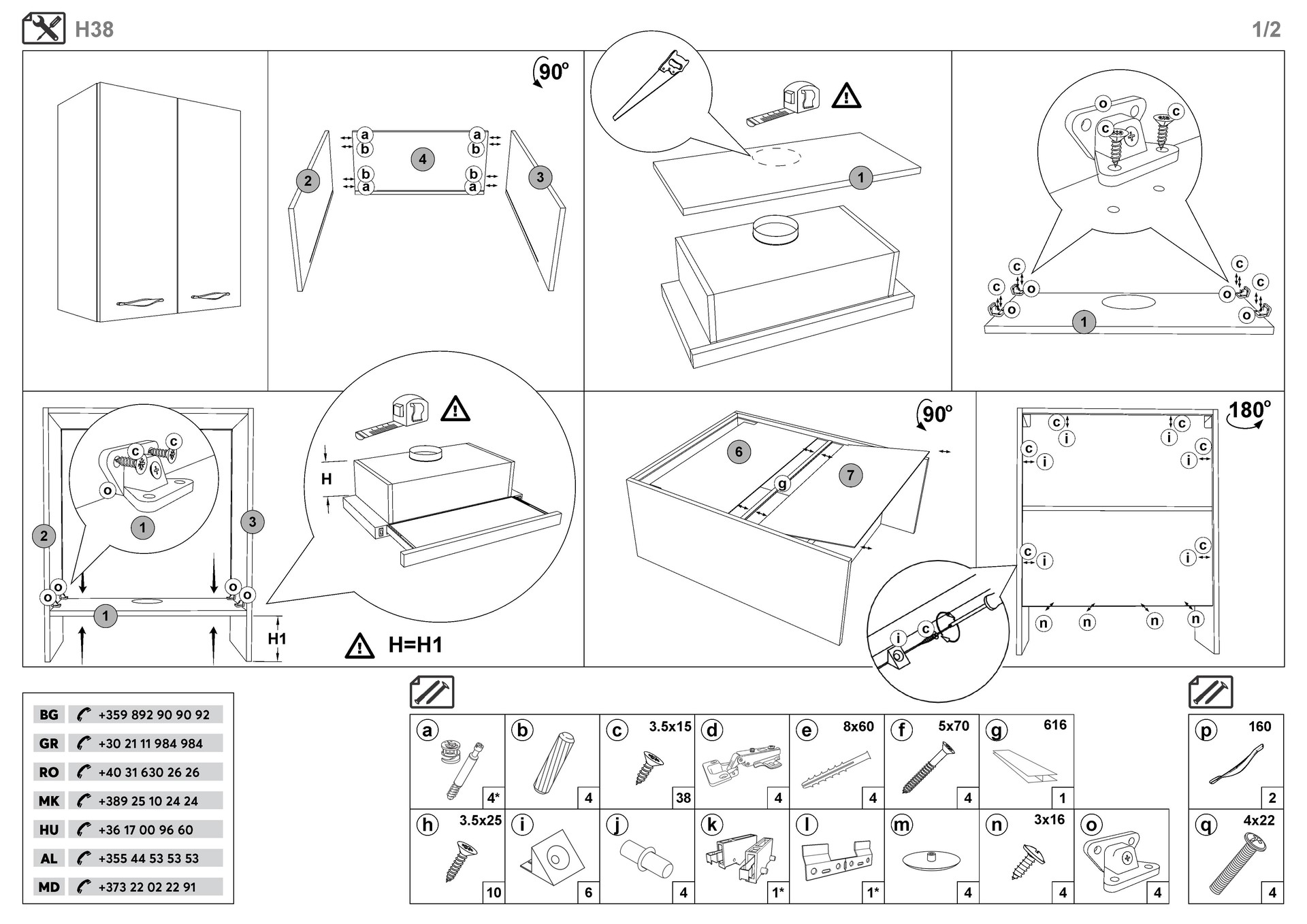 - Dulapurile pot fi aranjate intr-o ordine diferita de cea din ilustratie.