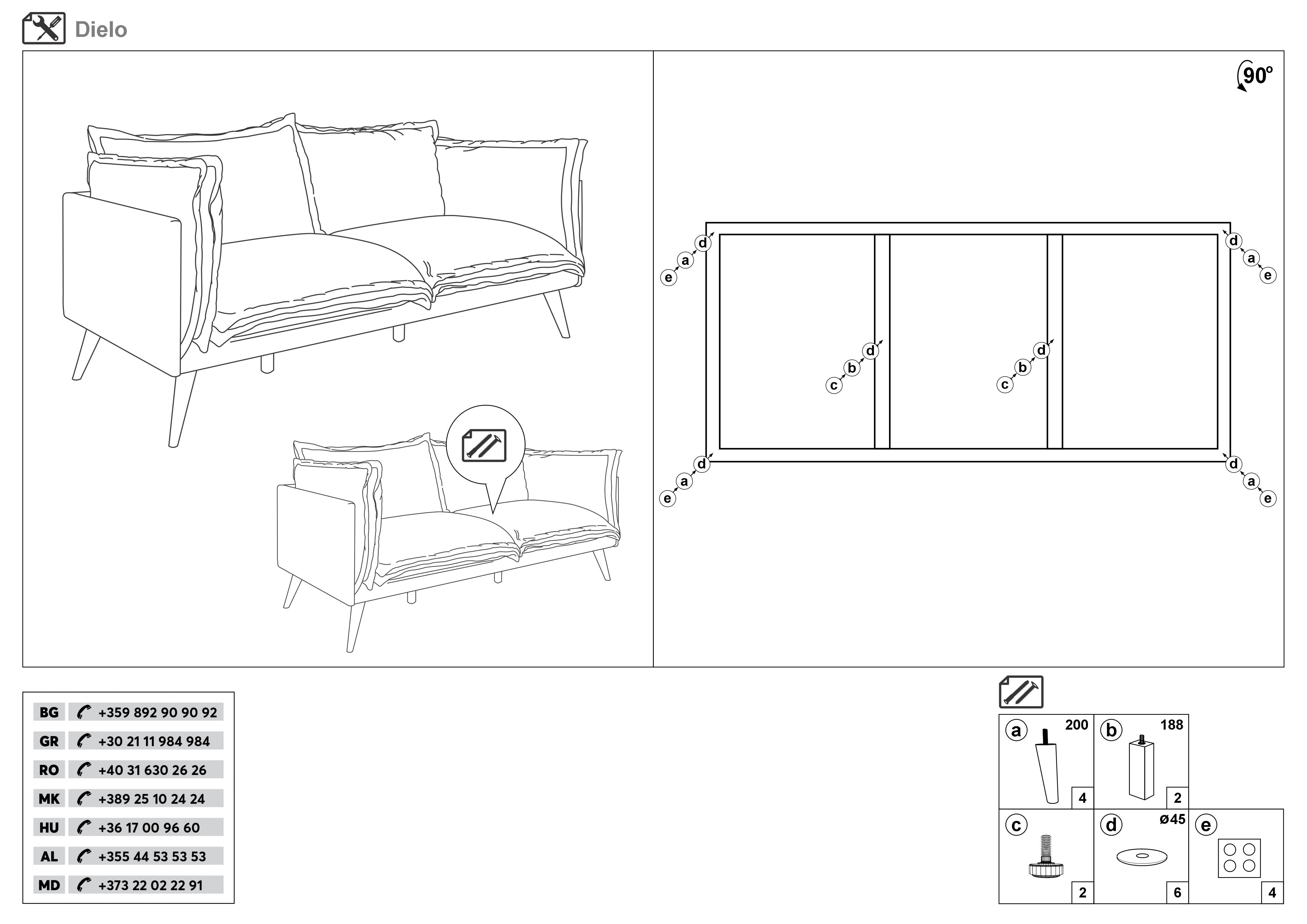 LA DESPACHETAREA mobilierului nu recomandam folosirea unor obiecte ASCUTITE sau DE TAIAT, din cauza probabilitatii de taiere a stofei sau tapiteriei.