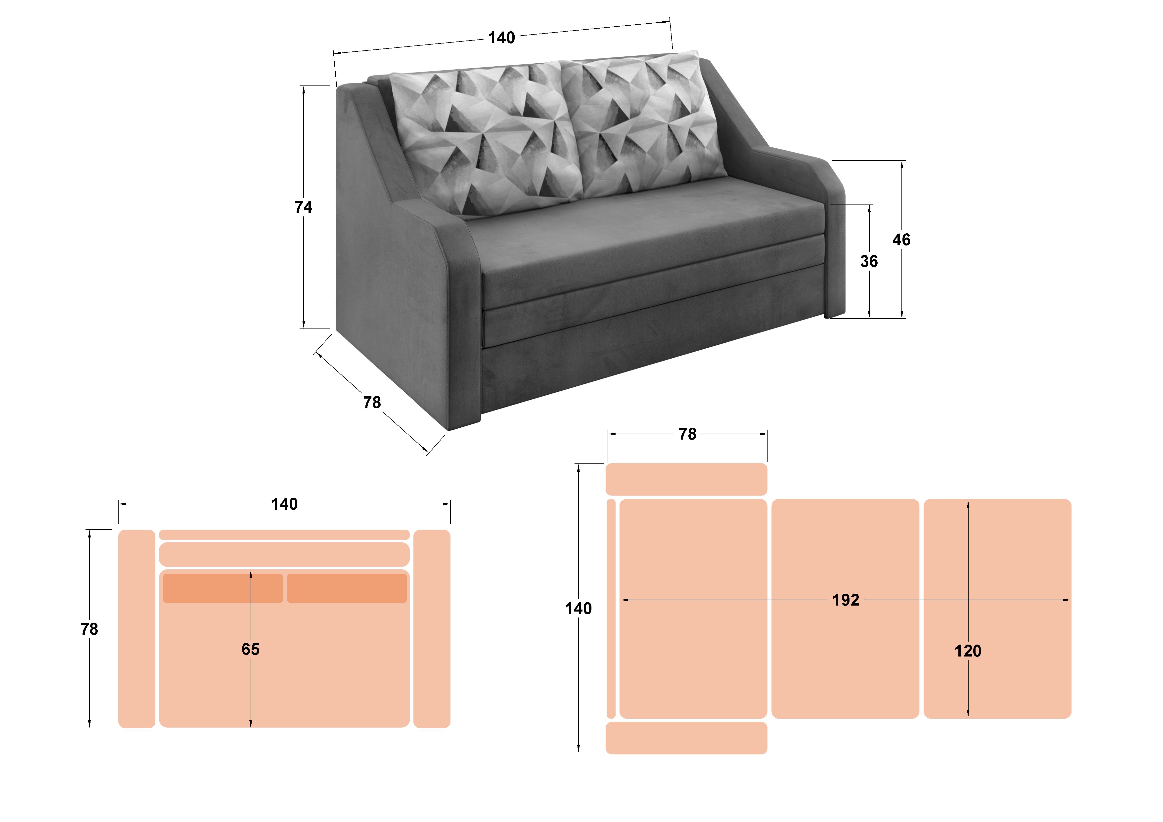 - dimensiuni: L140 B78 H46/74 cm