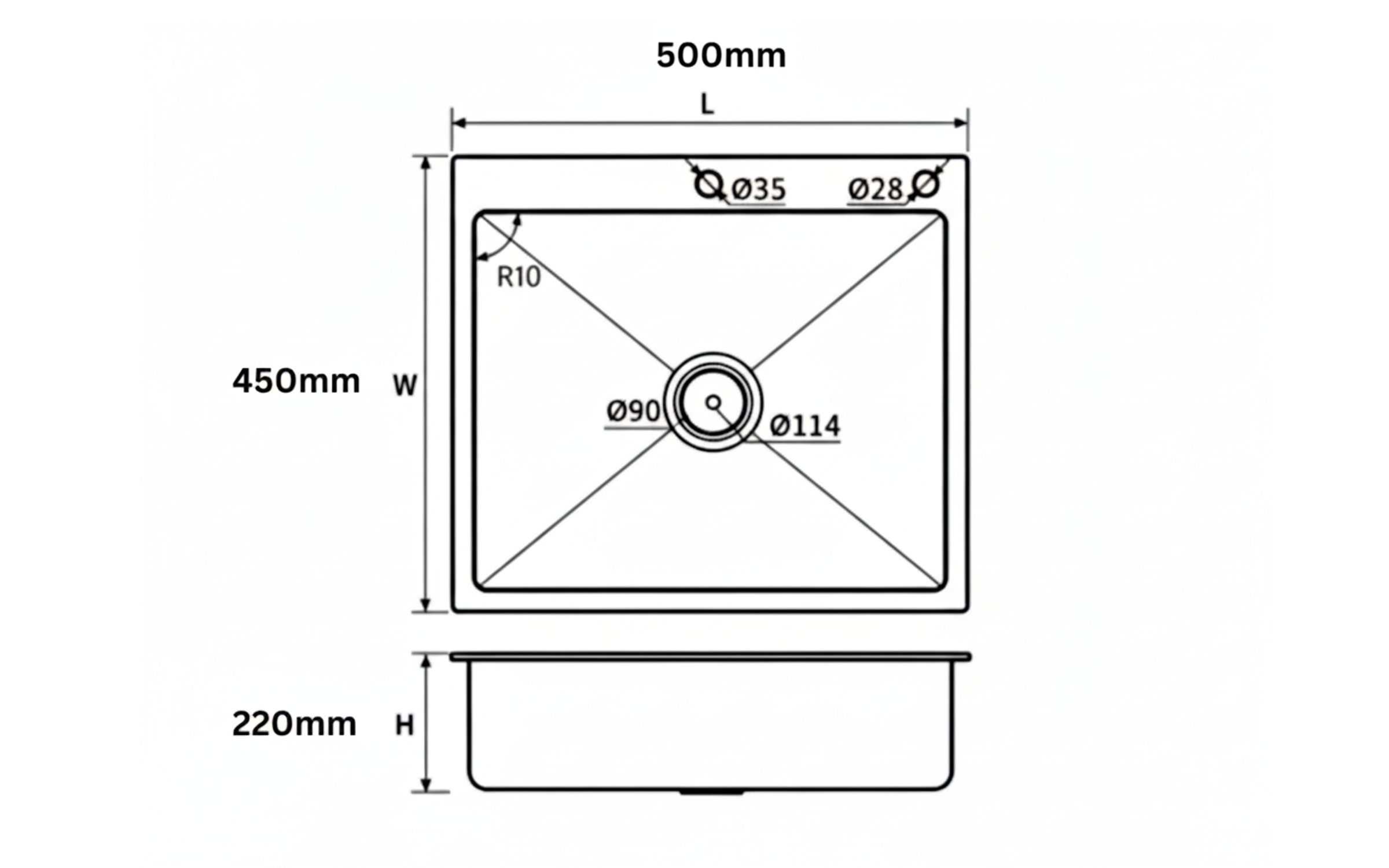 Colt R care contribuie la curatarea usoara a chiuvetei.