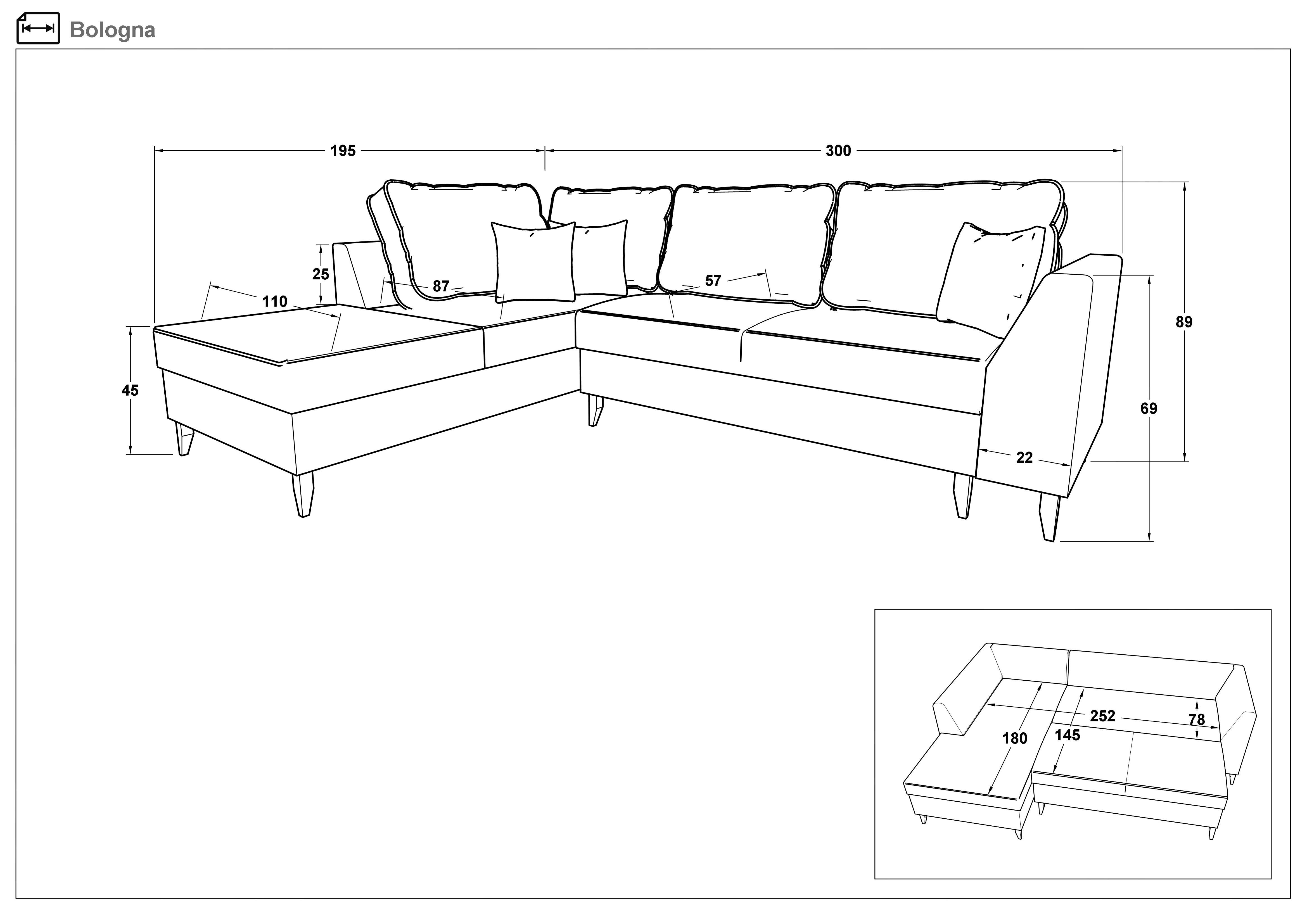 - Dimensiuni: L300 B195 H89 сm