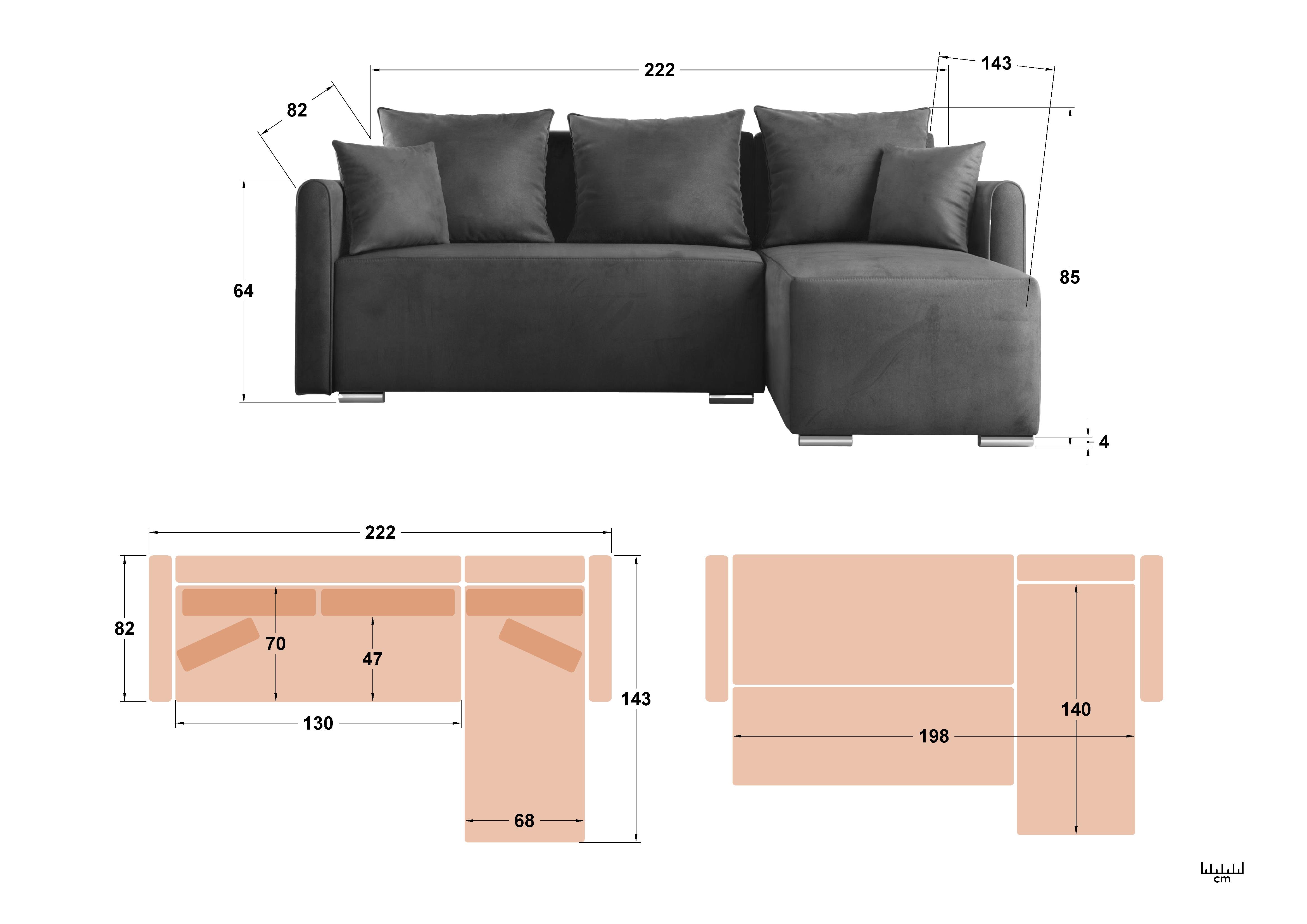 - perne - 3 buc. mari, 2 buc. decorative (huse detasabile cu fermoar)