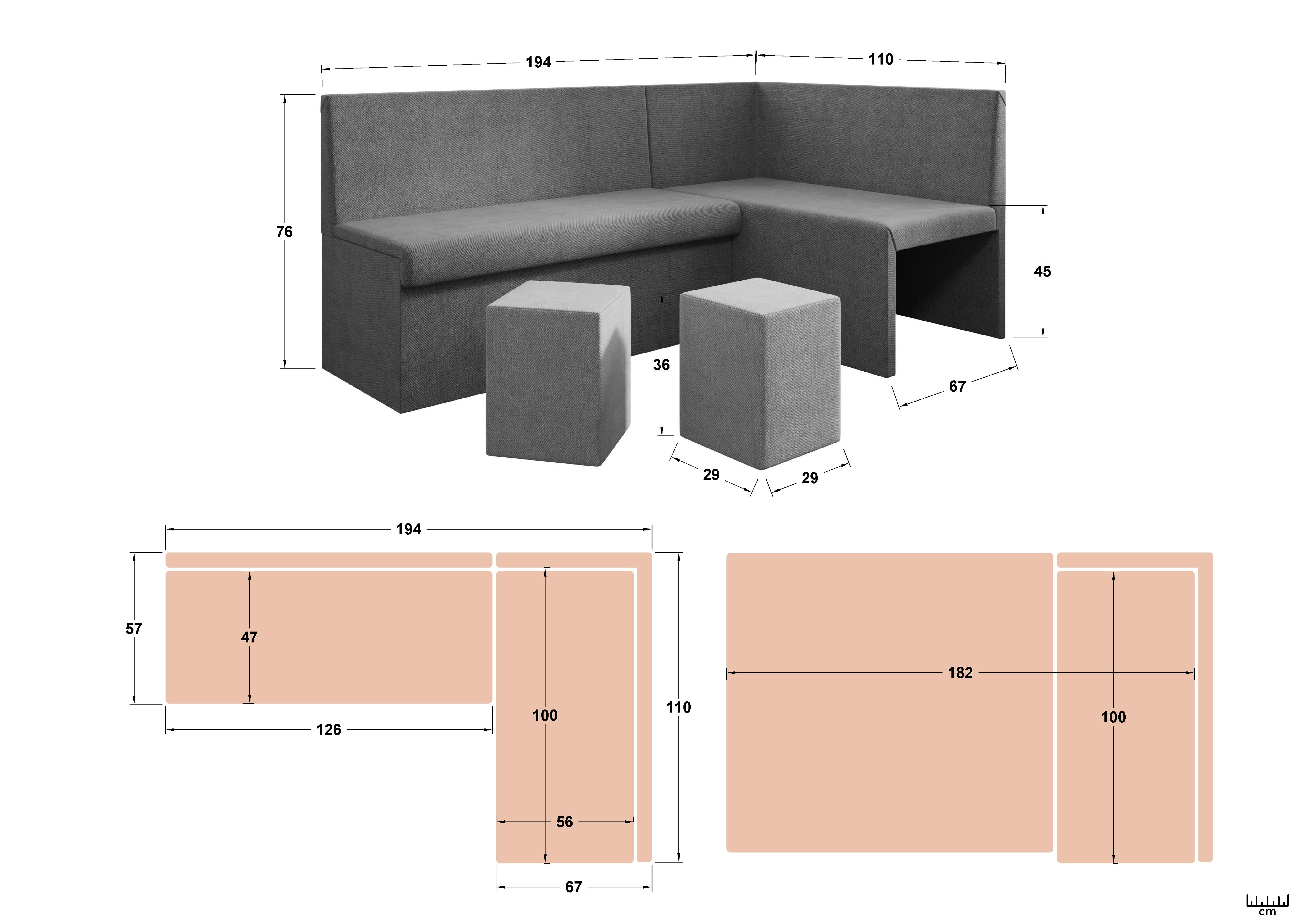 Coltar extensibil de bucatarie + 2 taburete Venturo