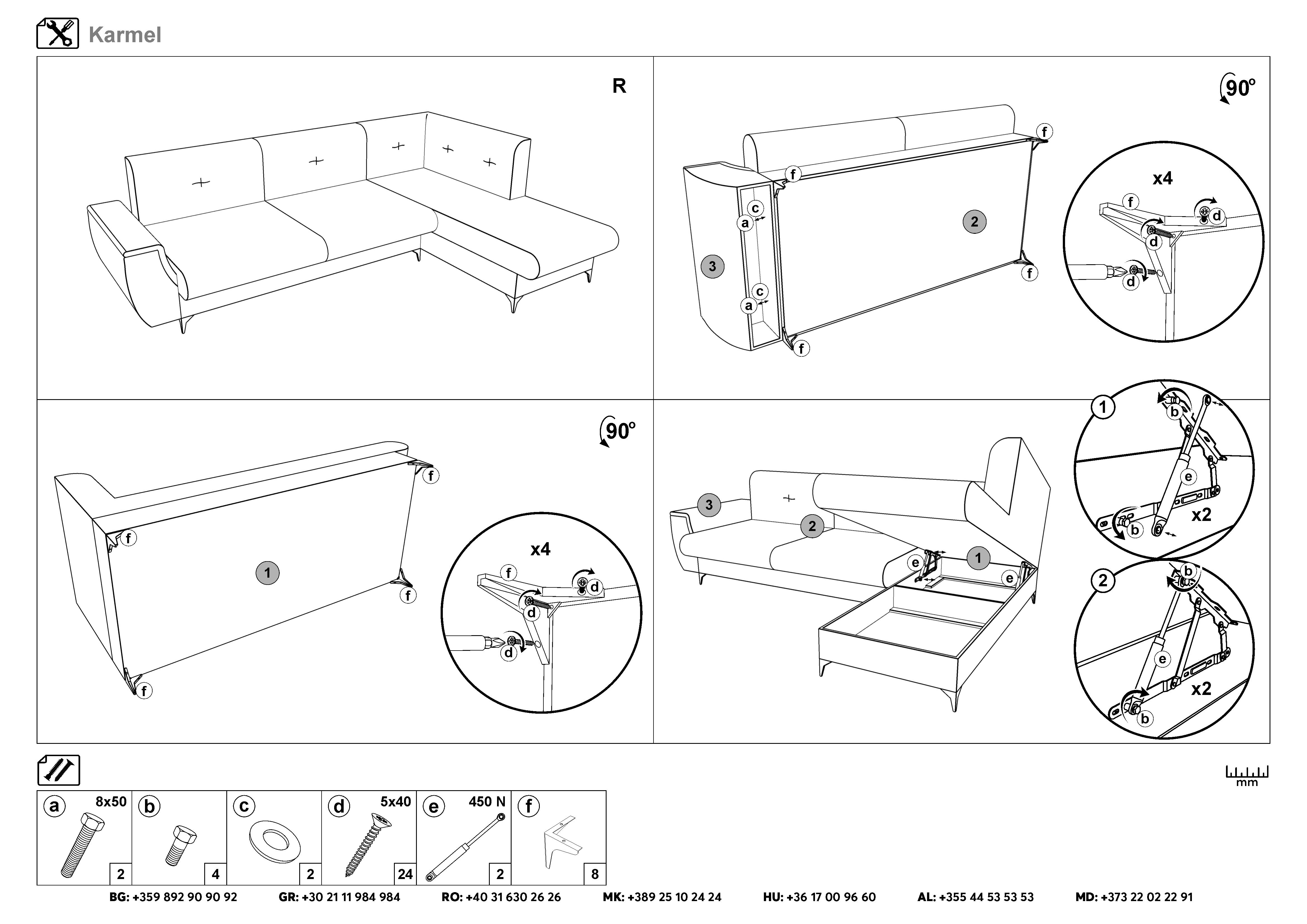 - Spatarul coltarului trebuie sa fie la cel putin 8 cm de perete pentru a se putea intinde.