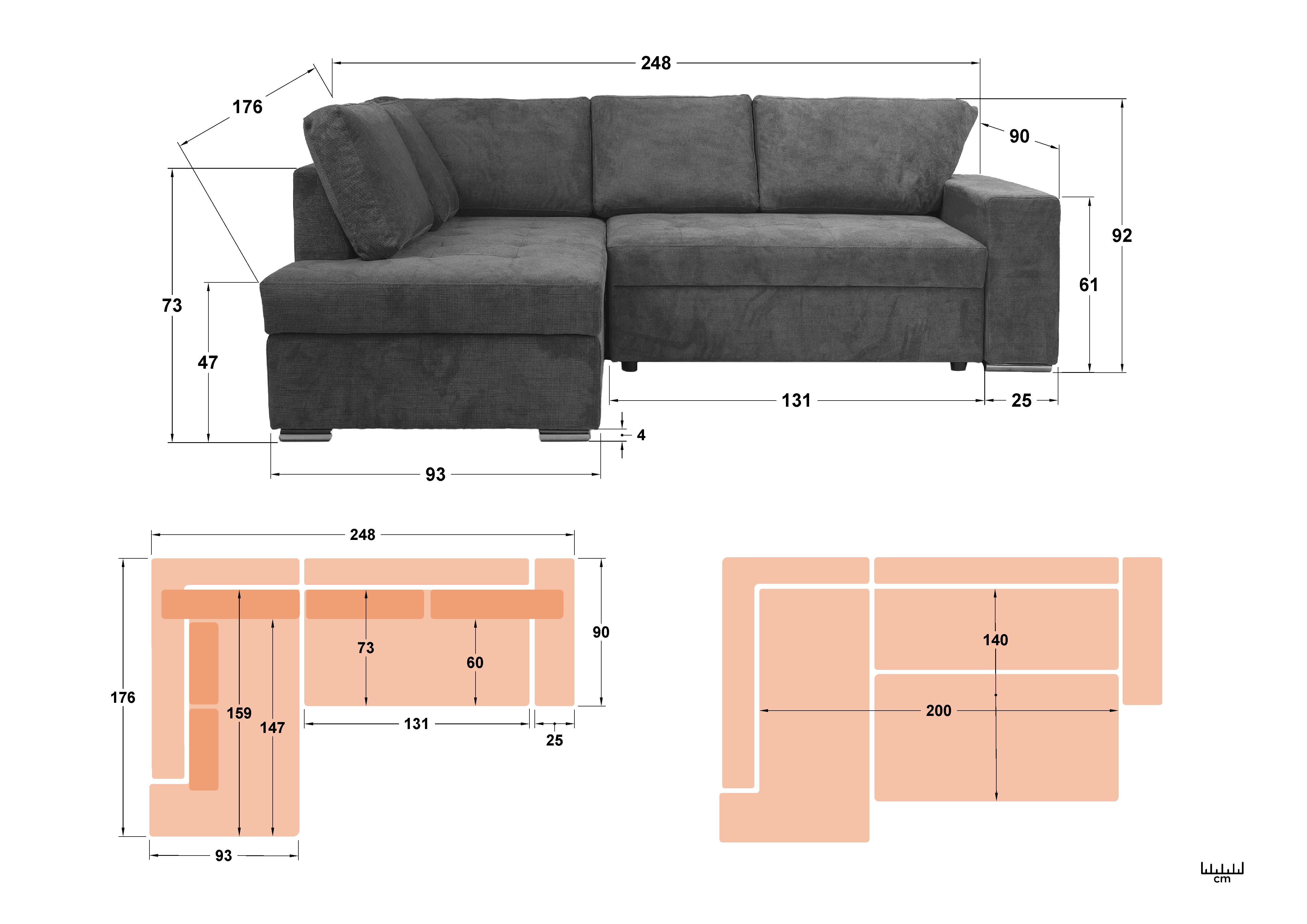 - Suprafata de dormit: 140/200 cm.