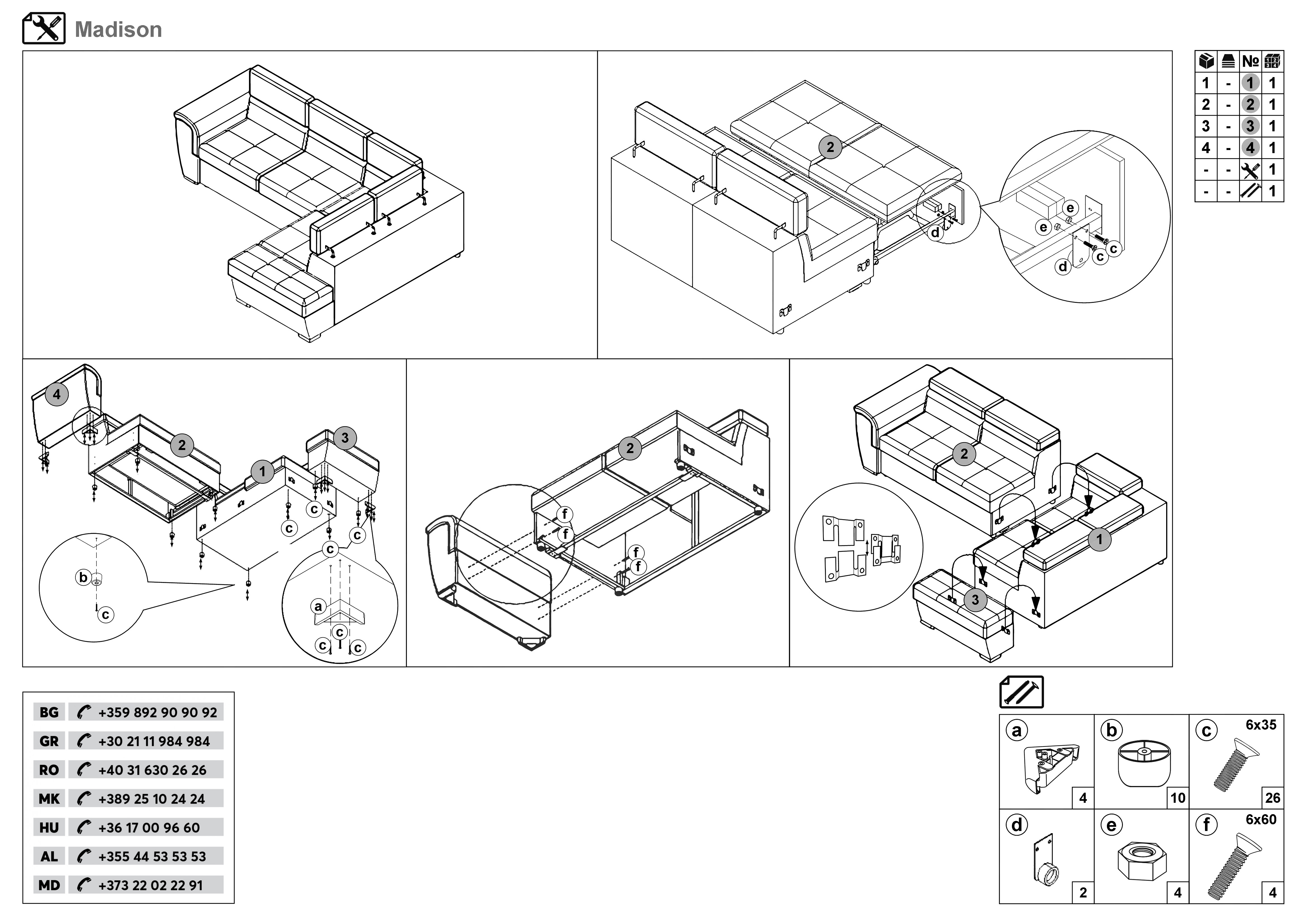 LA DESPACHETAREA mobilierului nu recomandam folosirea unor obiecte ASCUTITE sau DE TAIAT, din cauza probabilitatii de taiere a stofei sau tapiteriei.