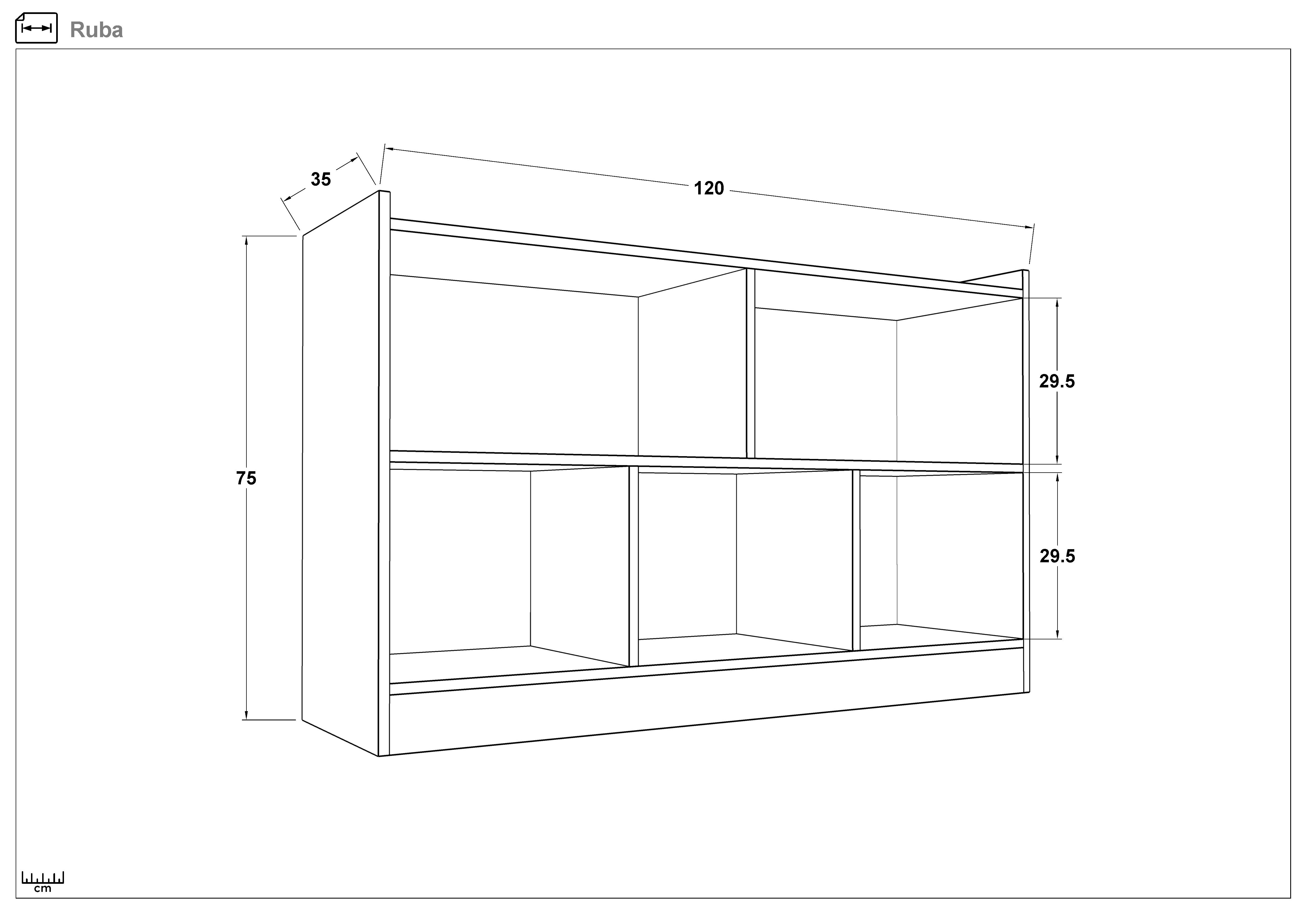 - L120 B35 H75 cm.