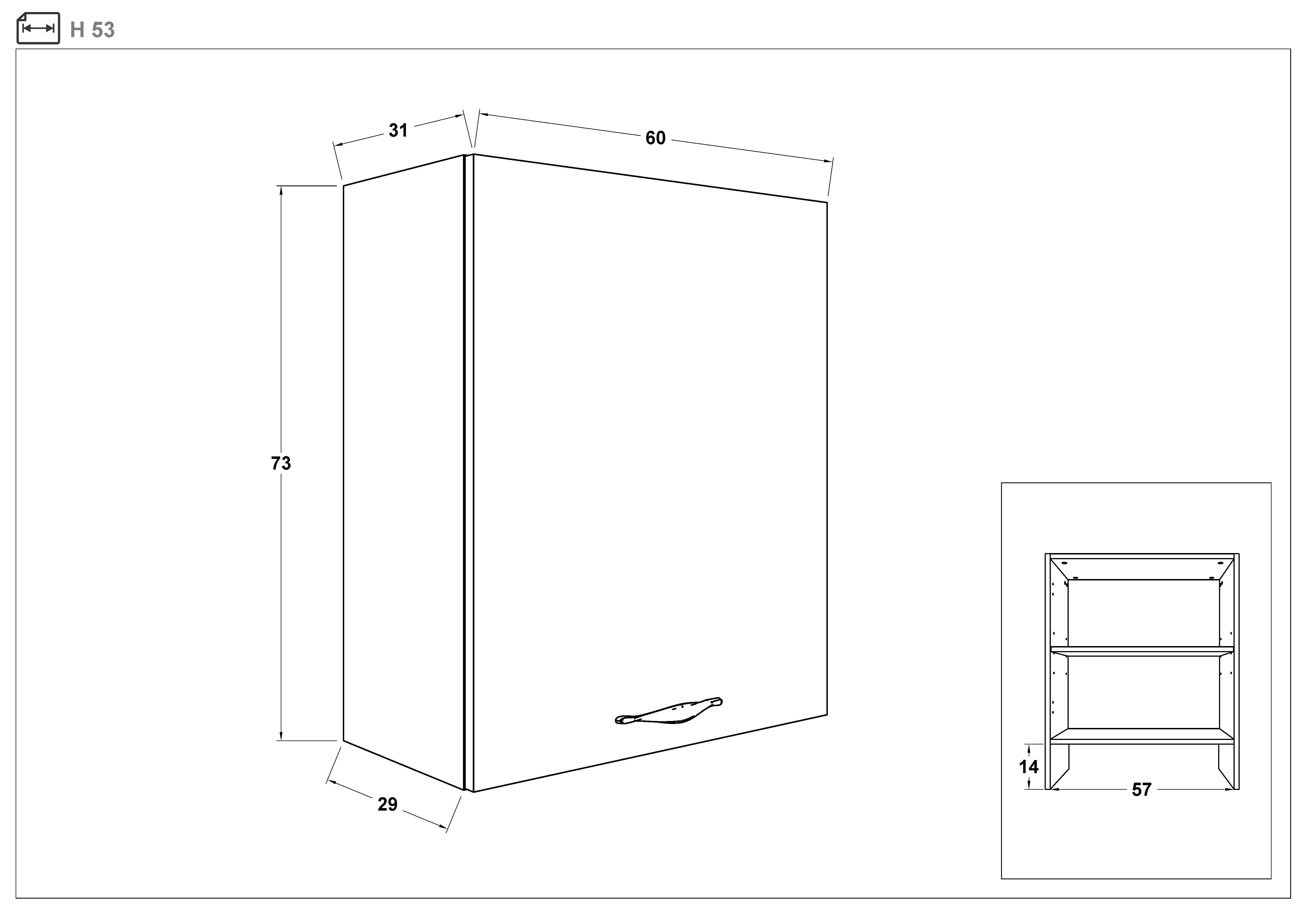 Modul Sena 53 face parte din sistemul modular de bucatarie "Sena". Modulul are 1 usi, potrivit pentru hota incorporabila cu adancime maxima de 29 cm.