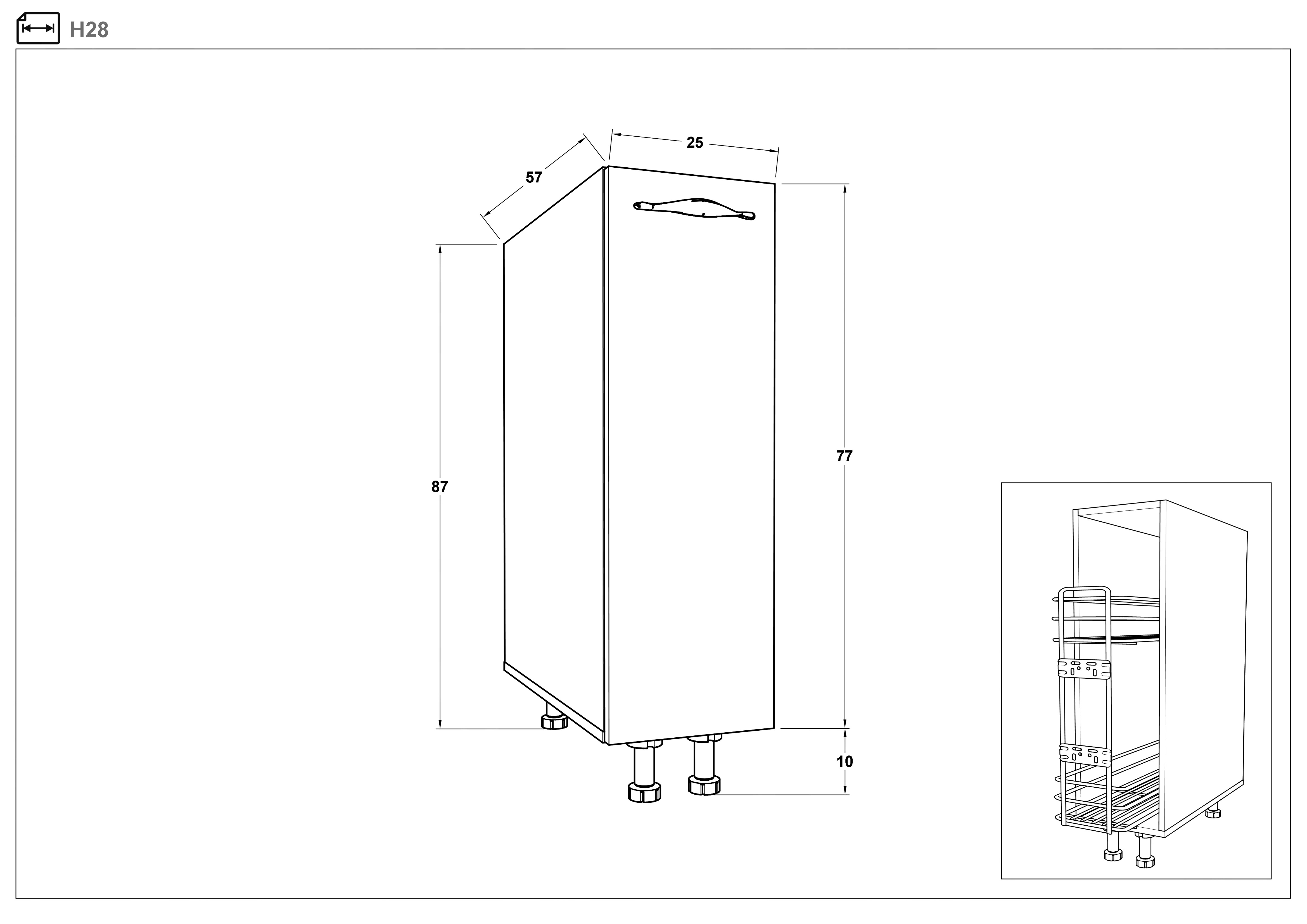 Modul Sena 28 face parte din sistemul modular de bucatarie "Sena".Dulap pentru sticle.
