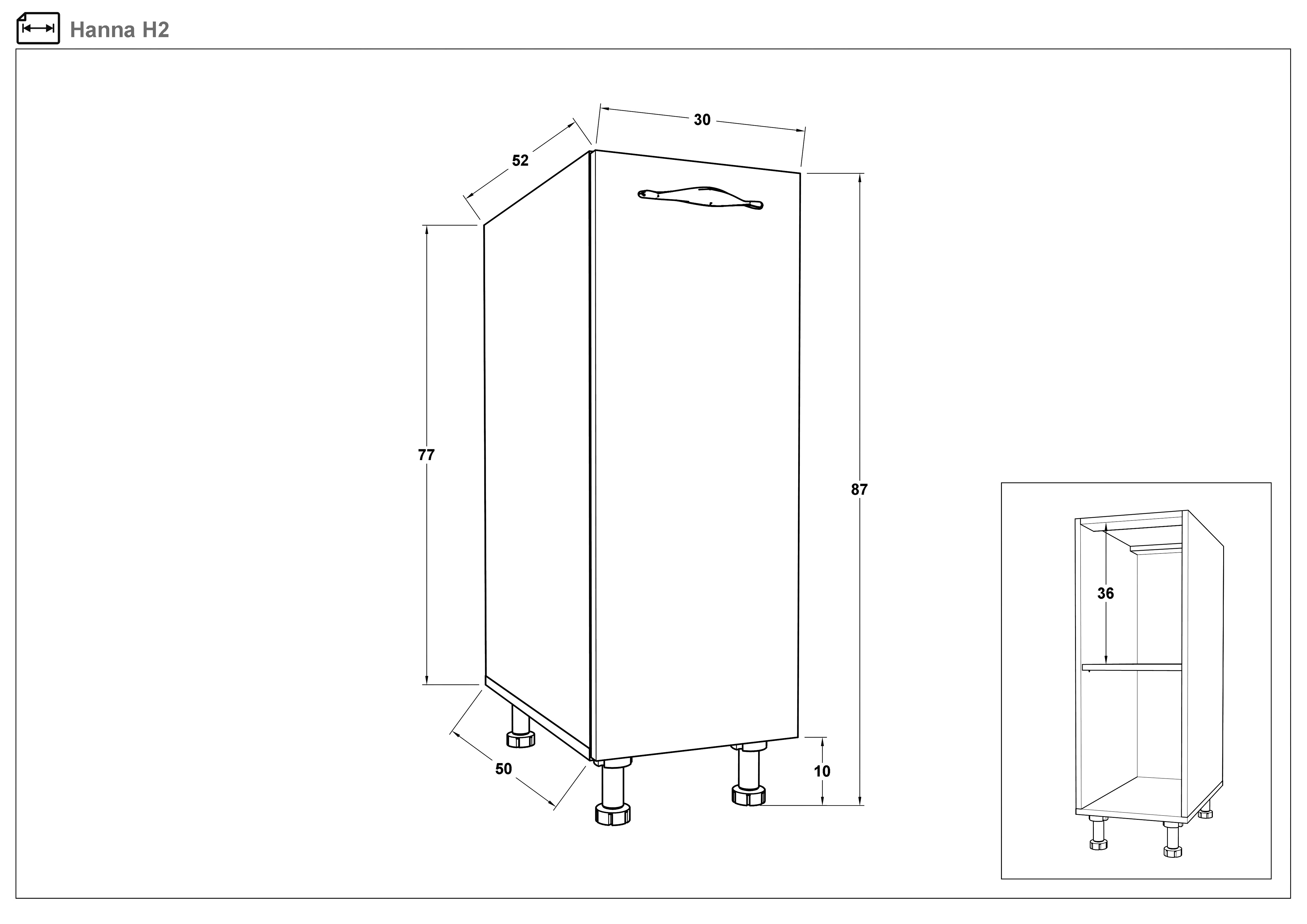 Modul Sena 02 face parte din sistemul modular de bucatarie "Sena". Modulul are o usa si un raft.