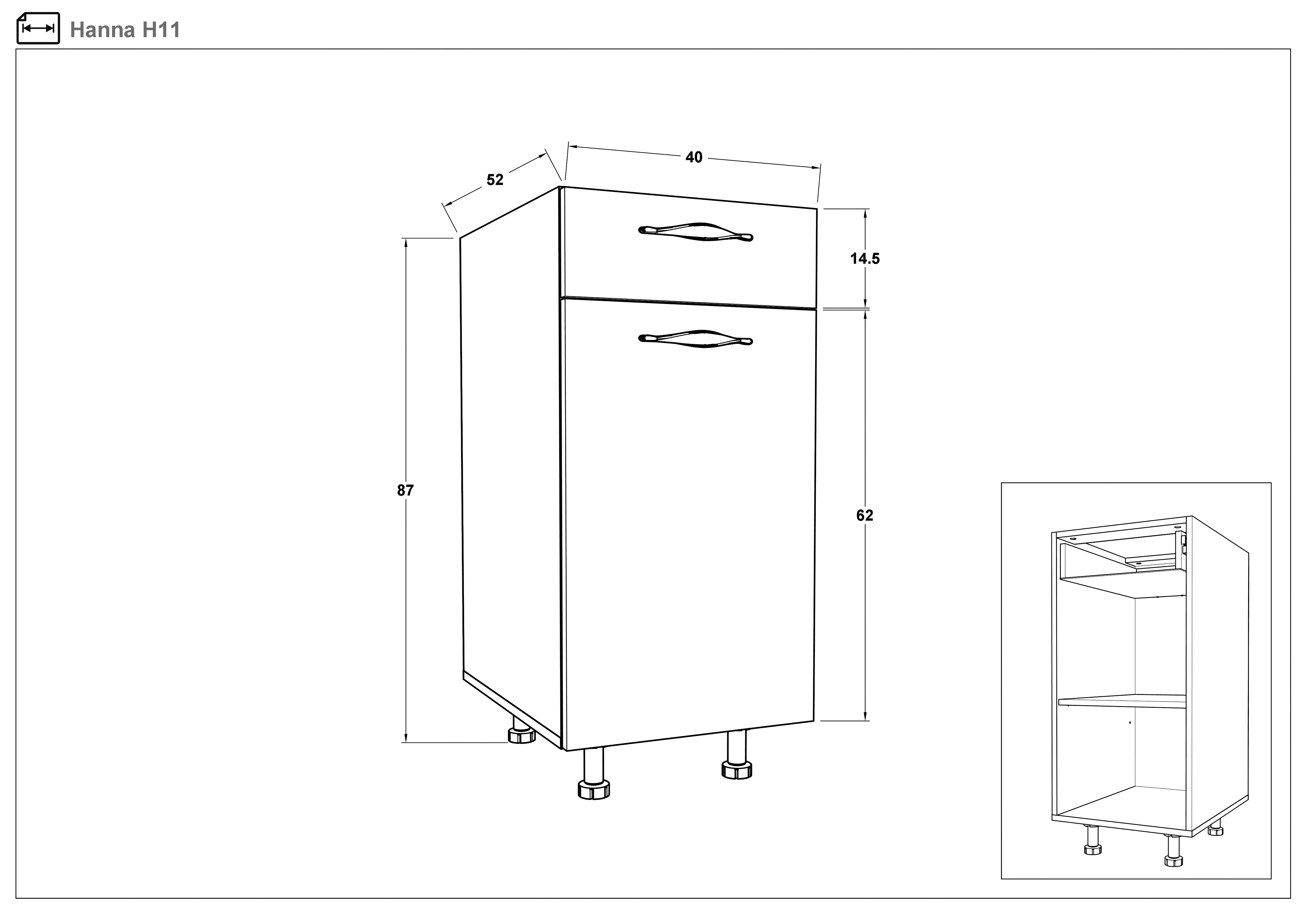 Modul Sena 11 face parte din sistemul modular de bucatarie "Sena". Modulul are usa si sertar