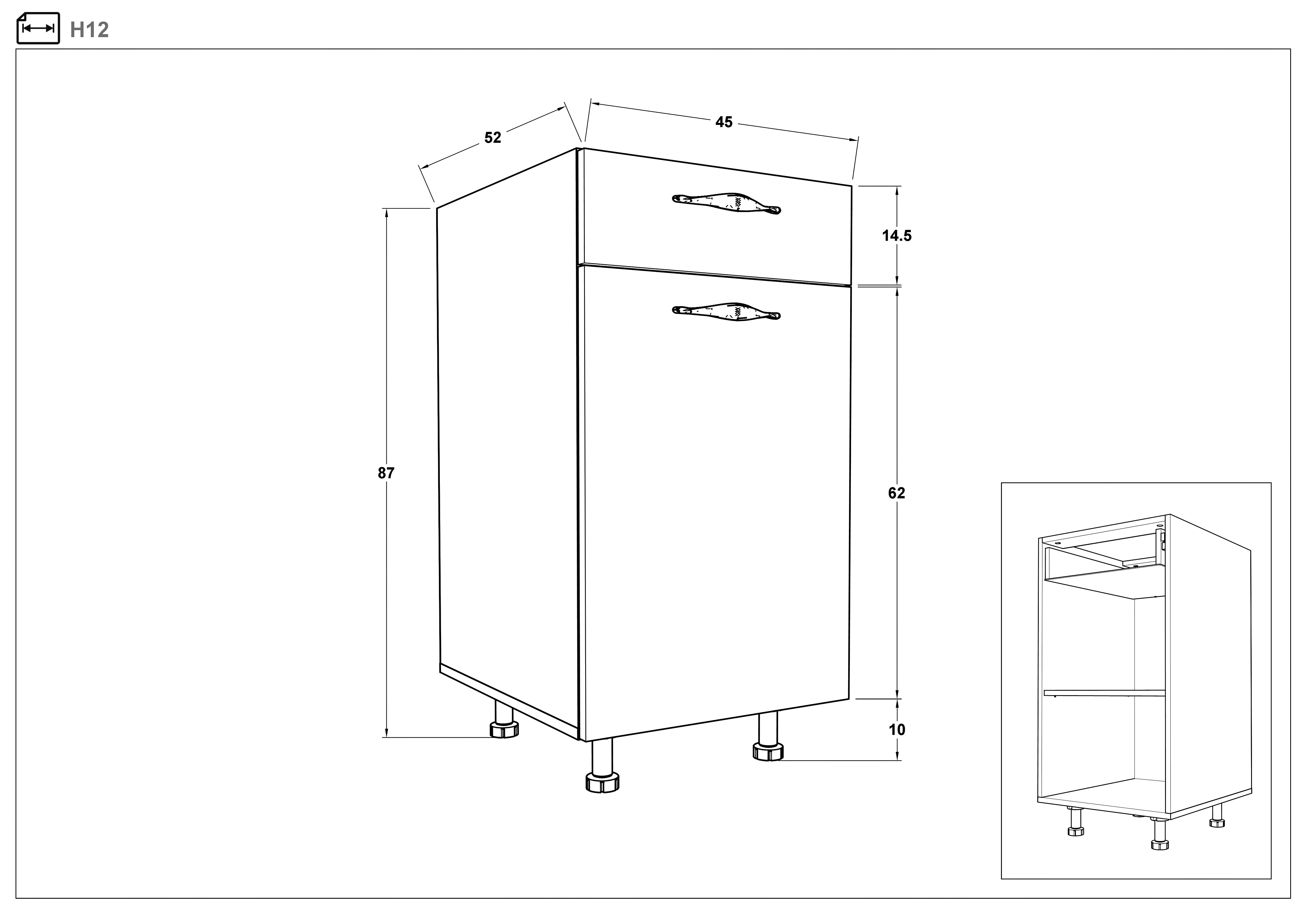 Modul Sena 12 face parte din sistemul modular de bucatarie "Sena". Modulul are usa si sertar