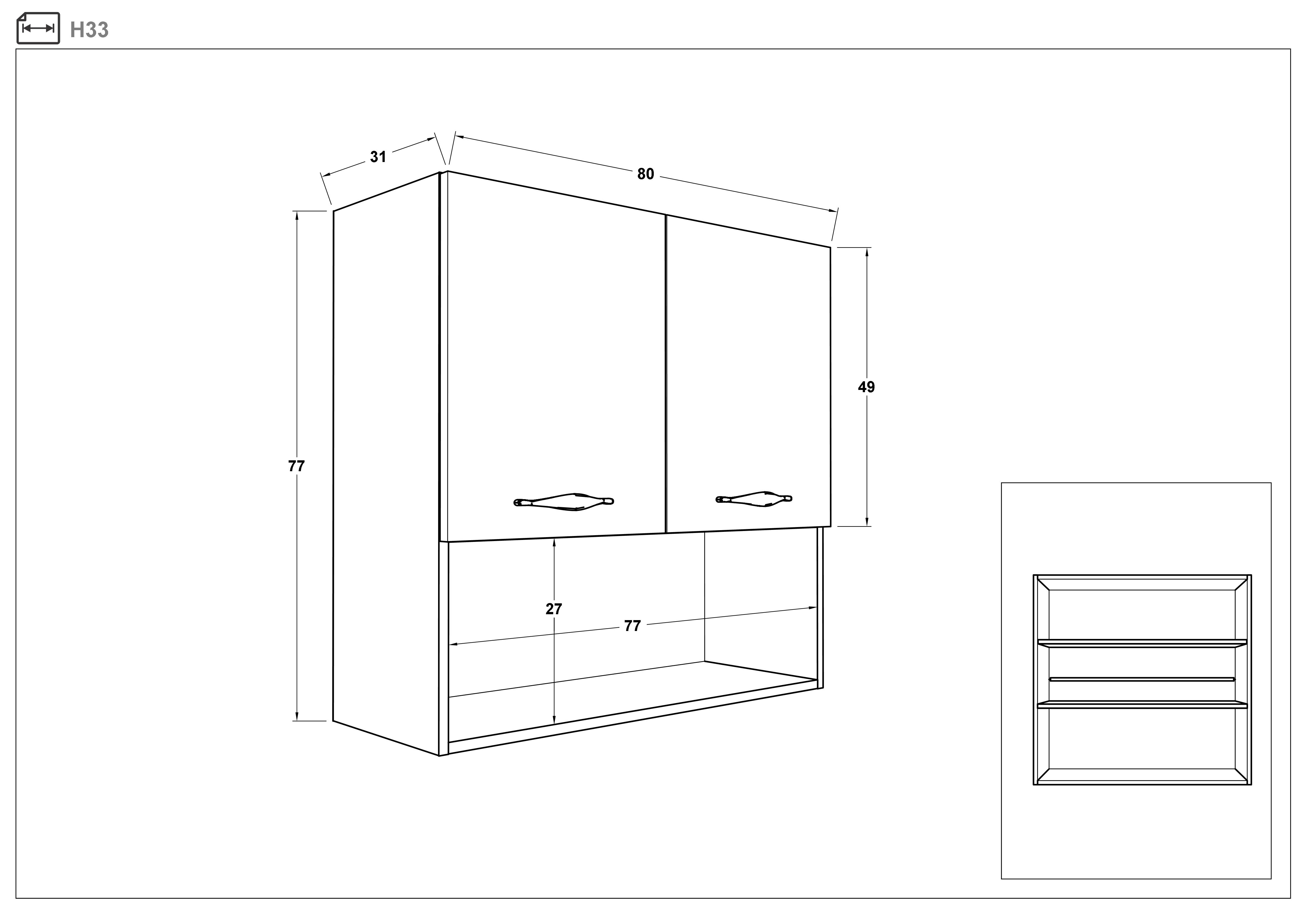 Modul Sena 33 face parte din sistemul modular de bucatarie "Sena".Modulul are 2 usi si un raft deschis.