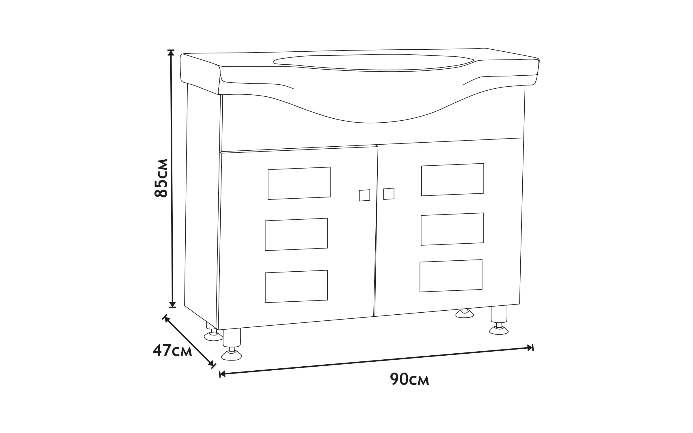 - dulap inferior: L90 B47 H85 сm
