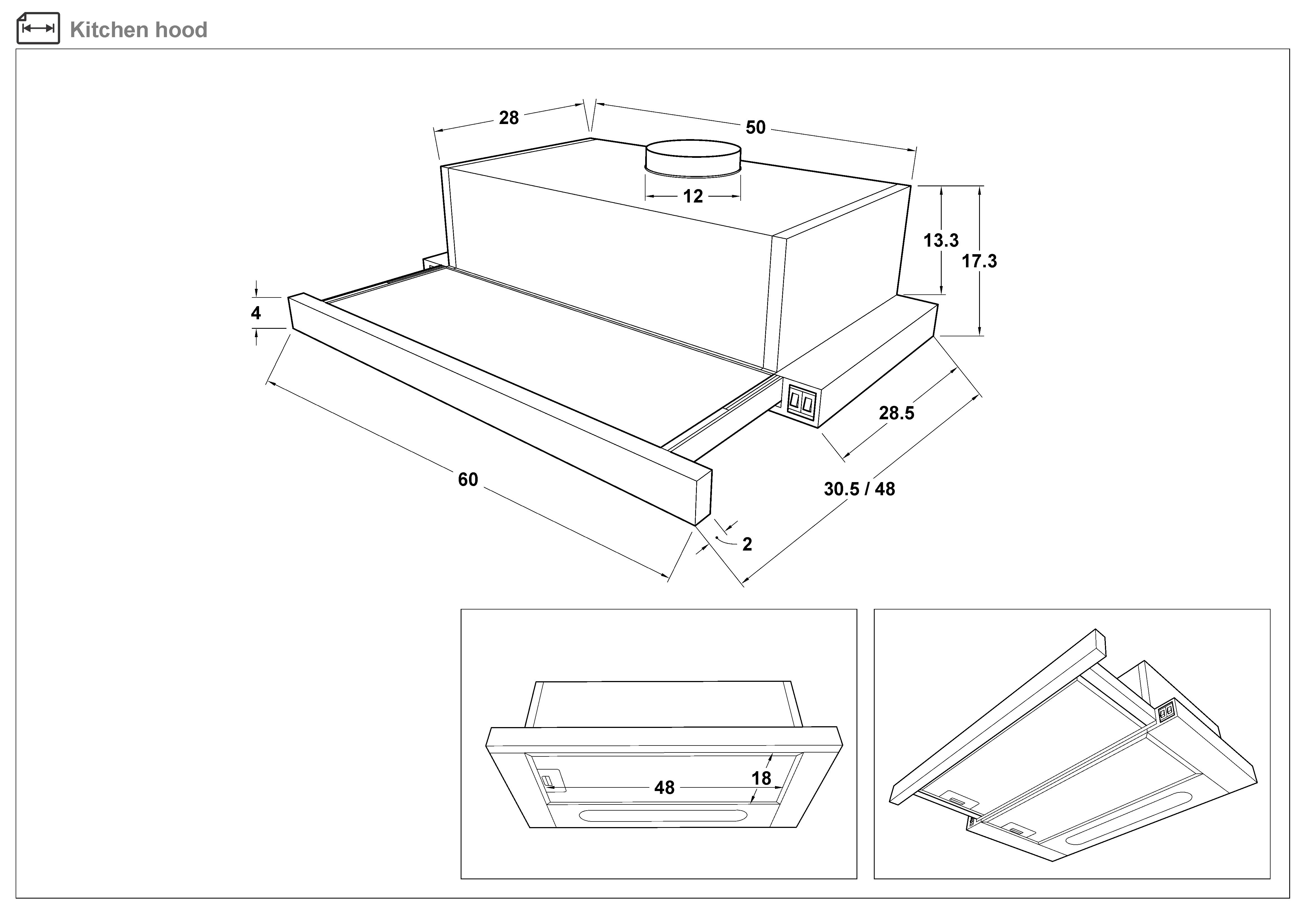 Hota este potrivita pentru instalare intr-un dulap de 60 cm.