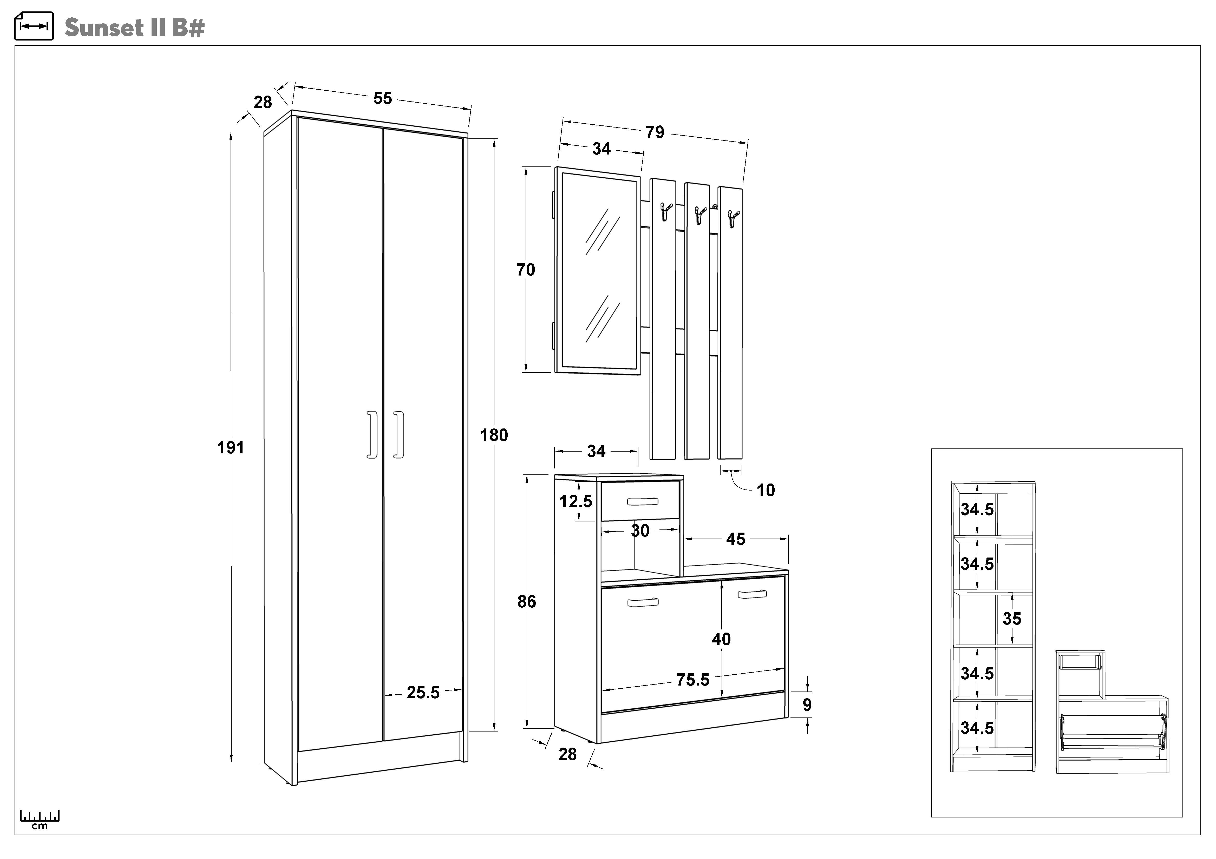 * parte inferioara: L34/79 B28 H52/86 cm.