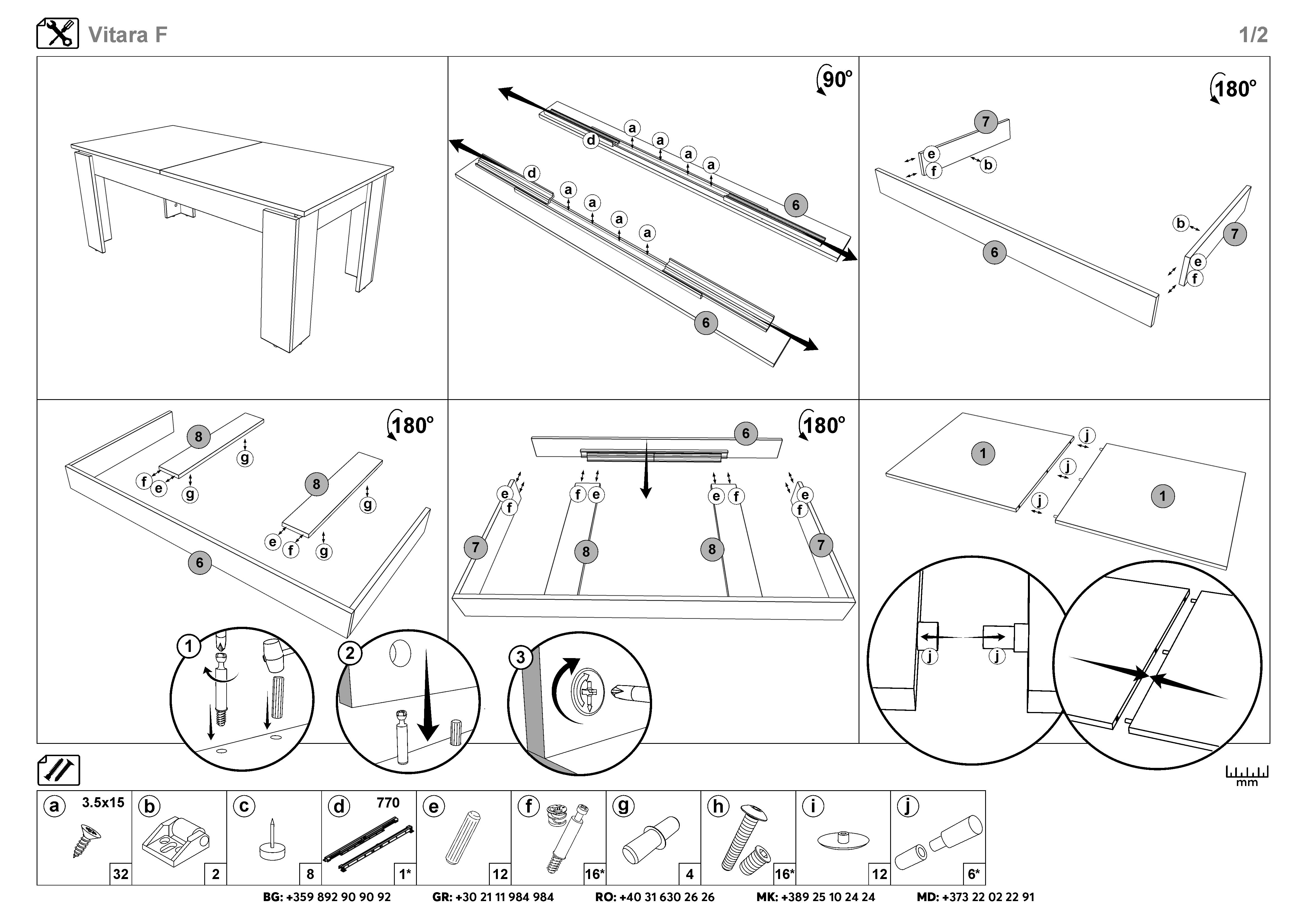 - Mecanismul sincron de extindere al masutei ajuta ca extinderea sa fie extrem de usoara si confirtabila.
