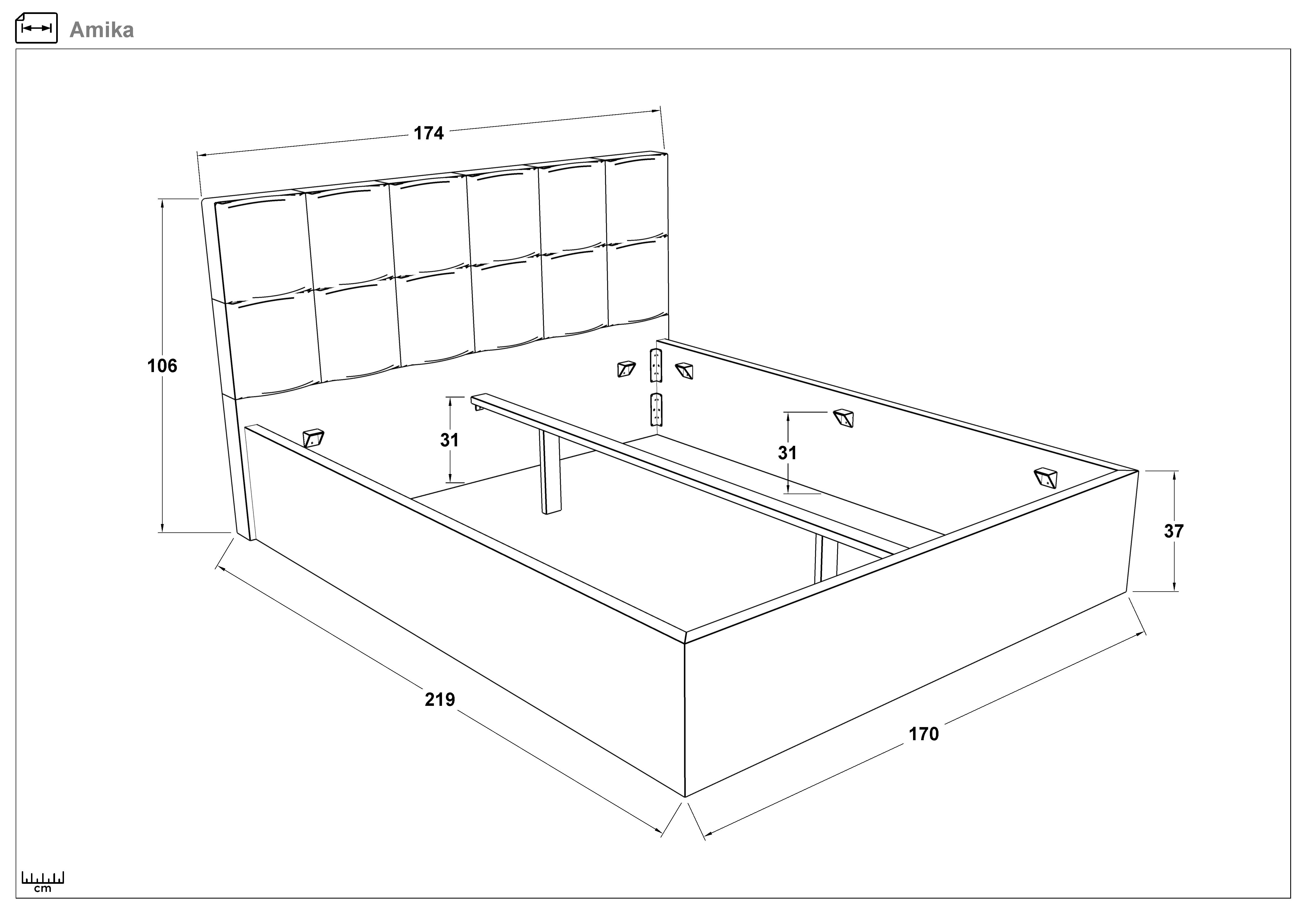 Patul este potrivit pentru saltele cu o fata si cu doua fete 160/200 cm.