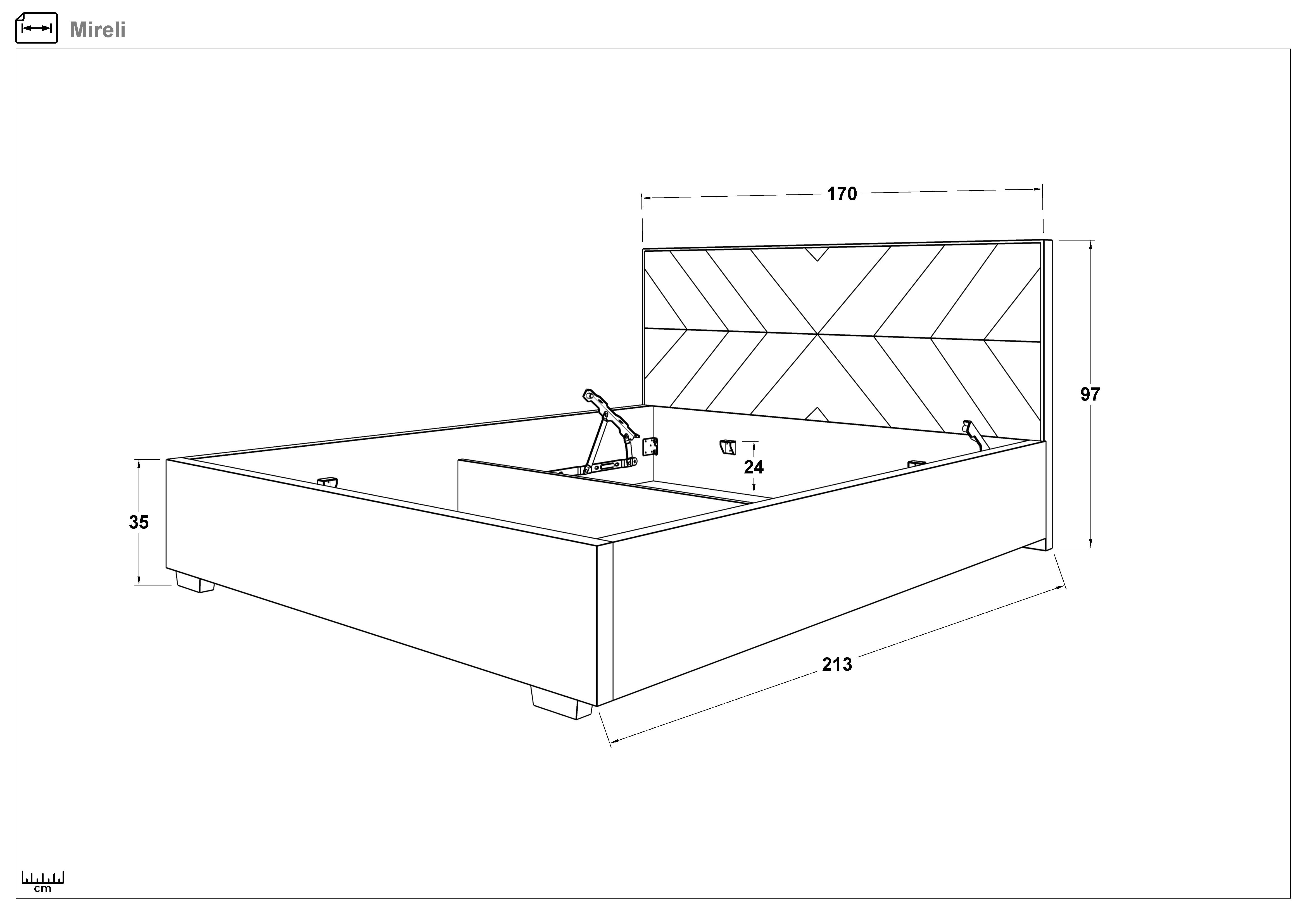Patul este potrivit atat pentru saltea cu o singura fata cat si pentru saltele cu doua fete, cu dimensiunile 160/200 cm.