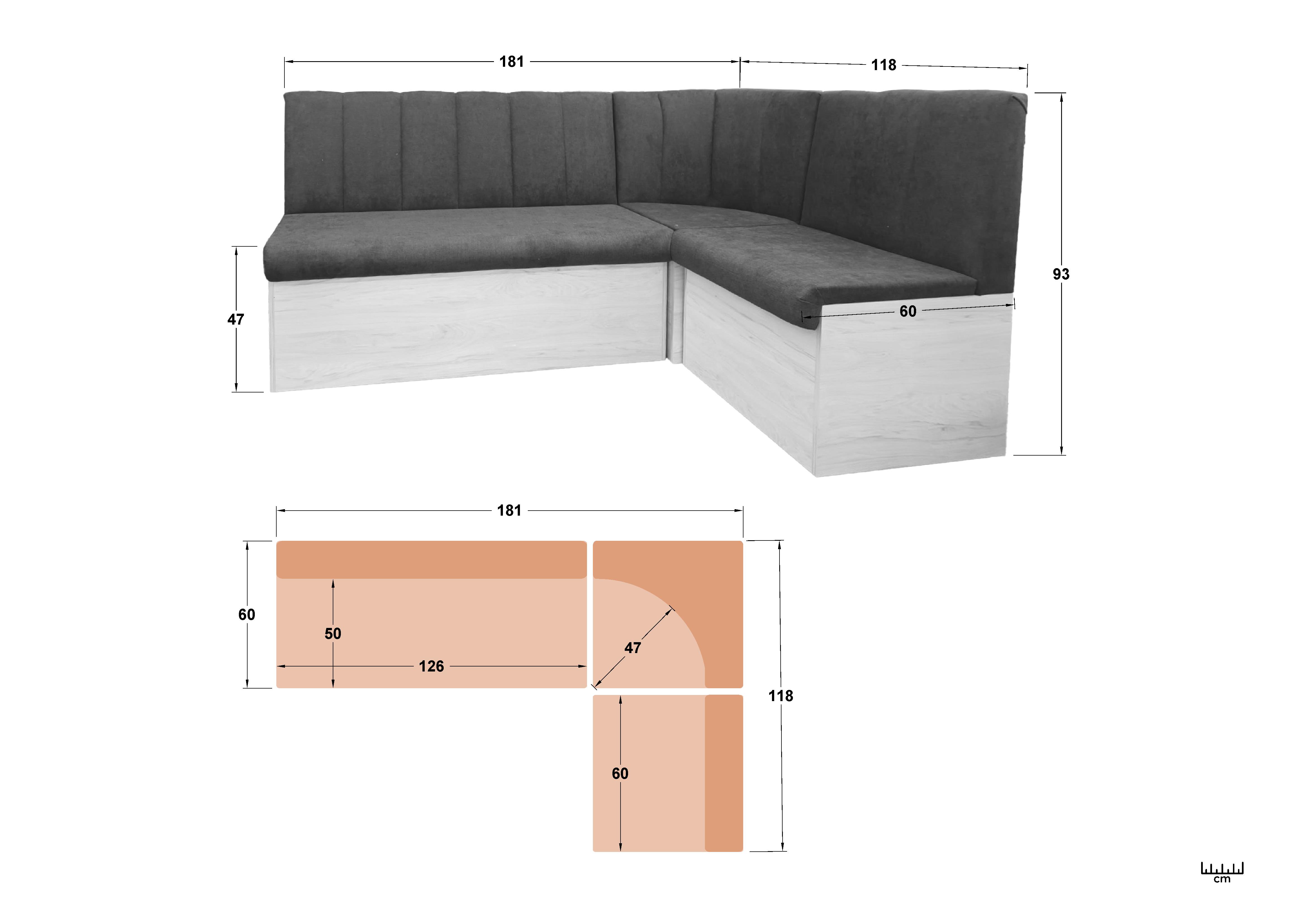 Кухонный уголок , светлый рокфорд + серо-коричневый