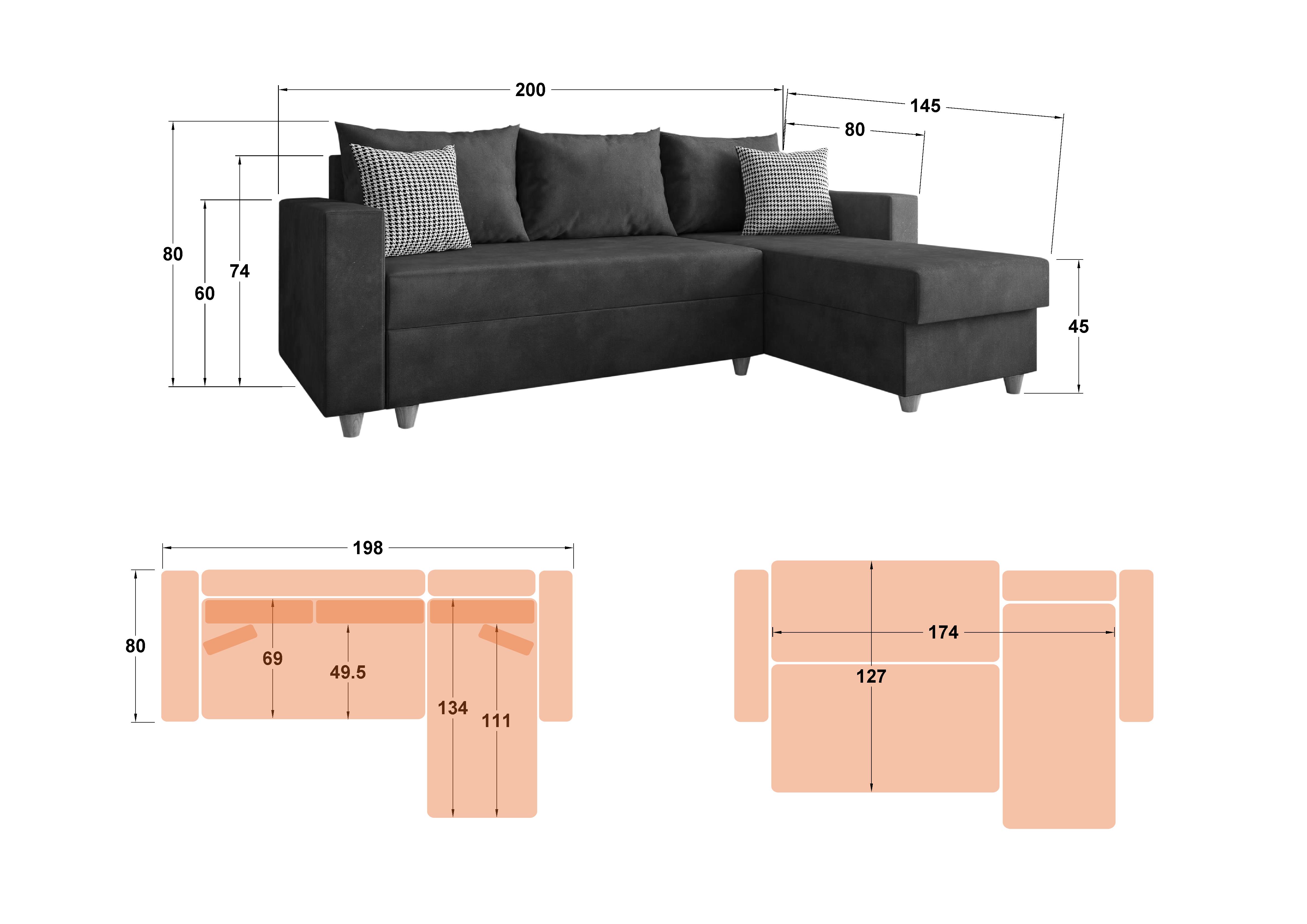 - perne - 3 perne mari, 2 perne mici (cu huse detasabile cu fermoar)