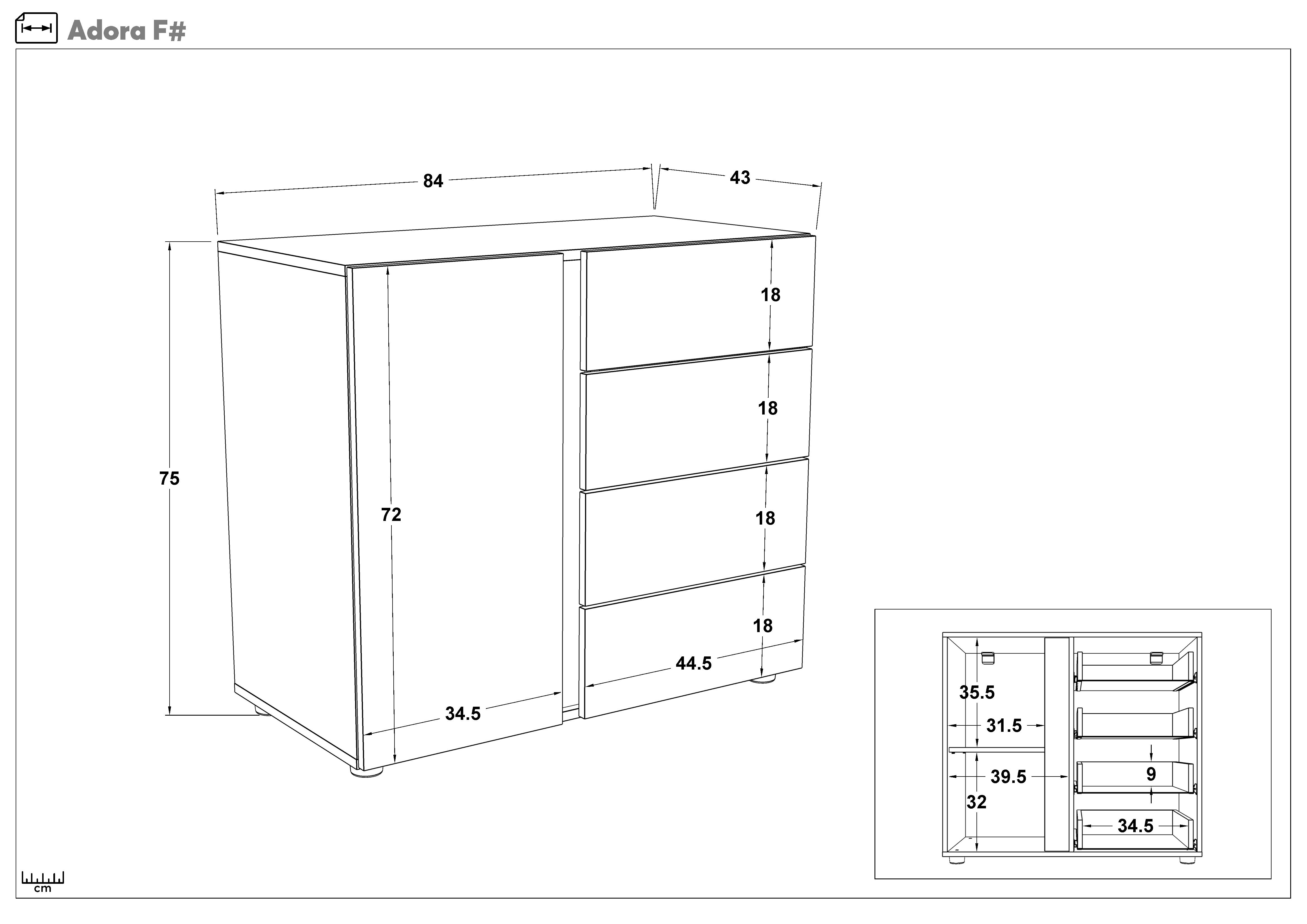 - Comoda practica cu 2 spatii mari de depozitare si 4 sertare.