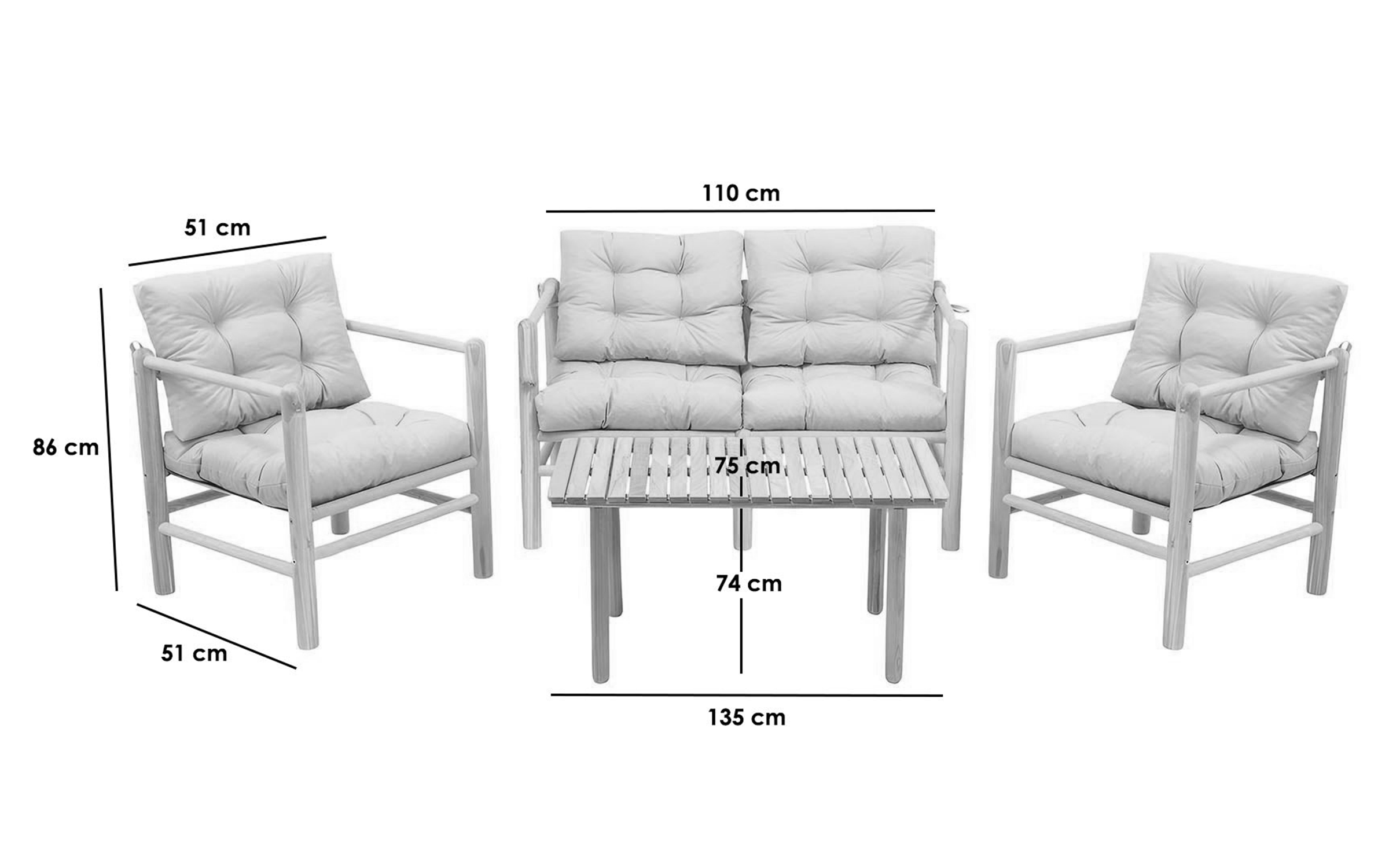 - L135 B75 H74 cm