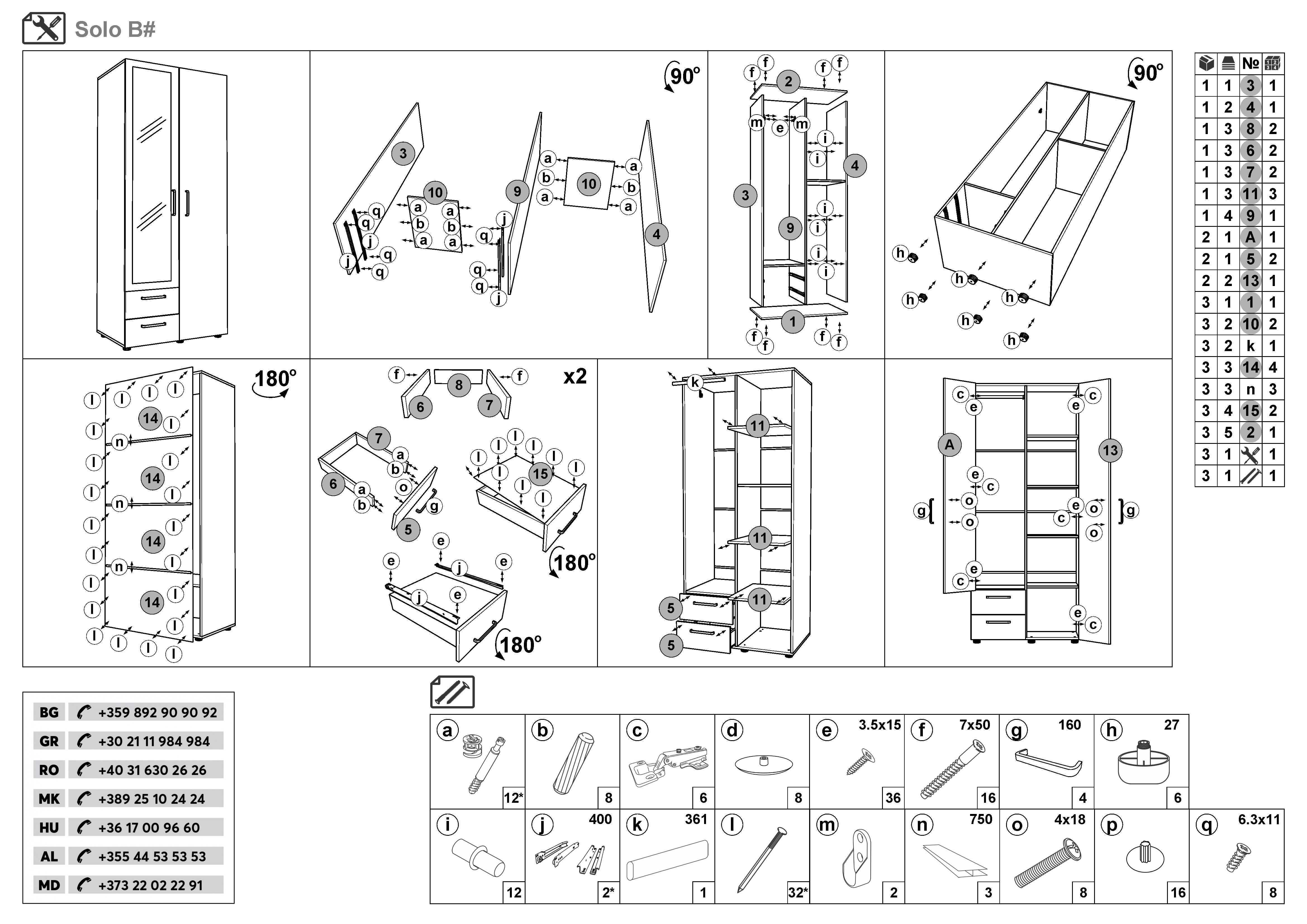 Pachet 2: 94/41.5/12.6 сm, greutate 20.4 kgSet numar pachete dulap Solo: 3