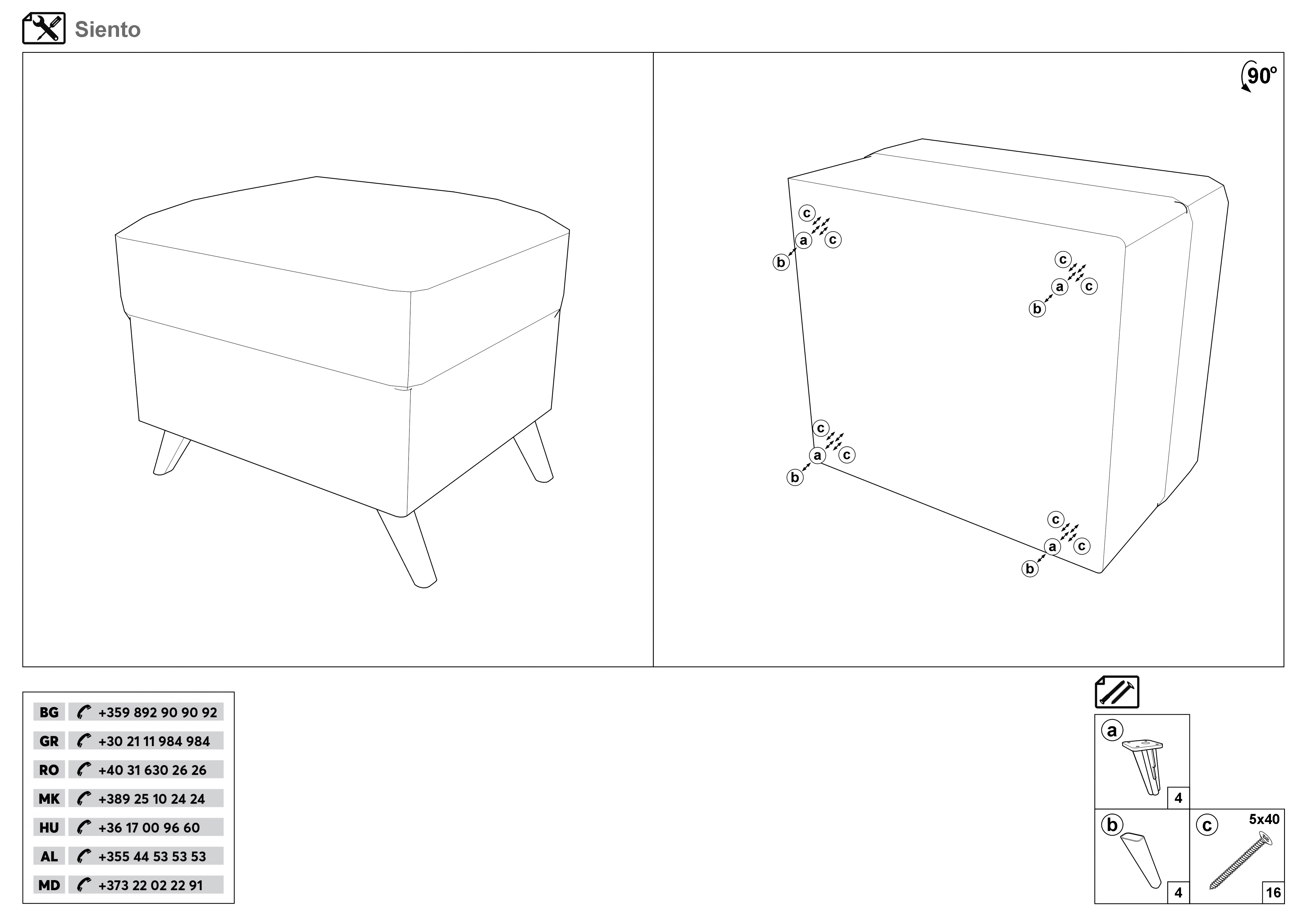 A DESPACHETAREA mobilierului nu recomandam folosirea unor obiecte ASCUTITE sau DE TAIAT, din cauza probabilitatii de taiere a stofei sau tapiteriei.